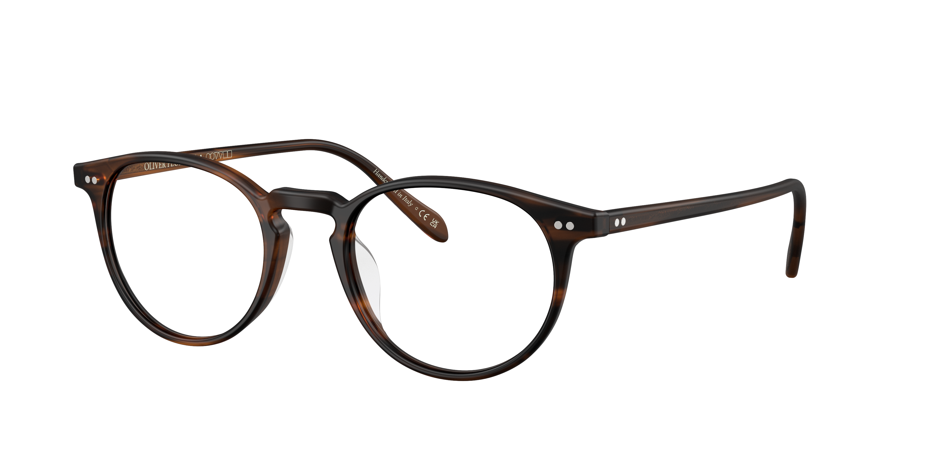 Experience the epitome of luxury and style with Oliver Peoples Riley-R eyeglasses. Crafted from high-quality acetate, these shades features a unique phantos shape that adds a touch of sophistication to any look. The semi matte tuscany tortoise frame color is complemented by a keyhole bridge detail, creating a timeless design. These frames are not only stylish but also practical. Available with prescription lenses.