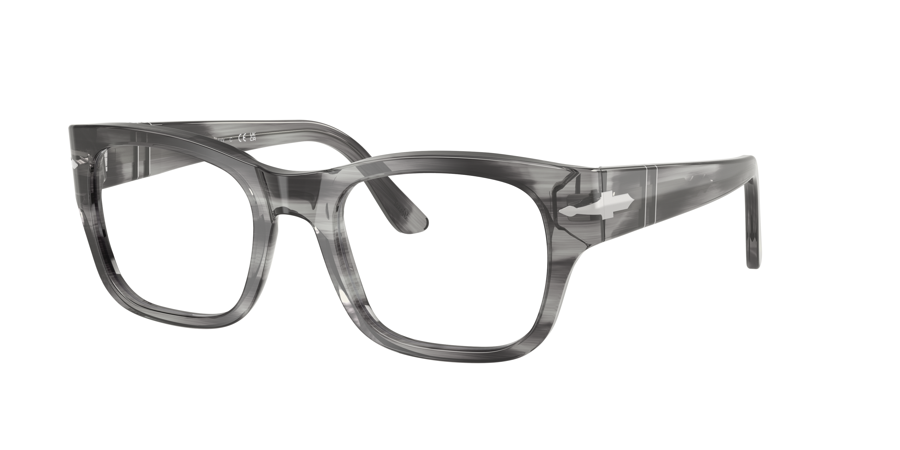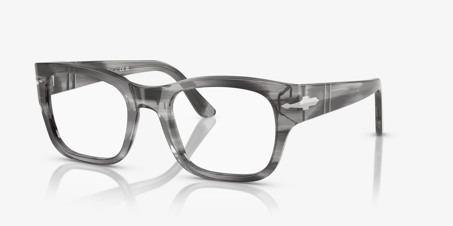 Elevate your style while enhancing your vision with Persol PO3297V eyeglasses. The rectangle shape and polished striped grey acetate frame offers a modern and sophisticated look, while the black accents add a touch of elegance. These shades are not only stylish but also versatile, making them a perfect choice for those seeking both fashion and function. Available with prescription lenses.