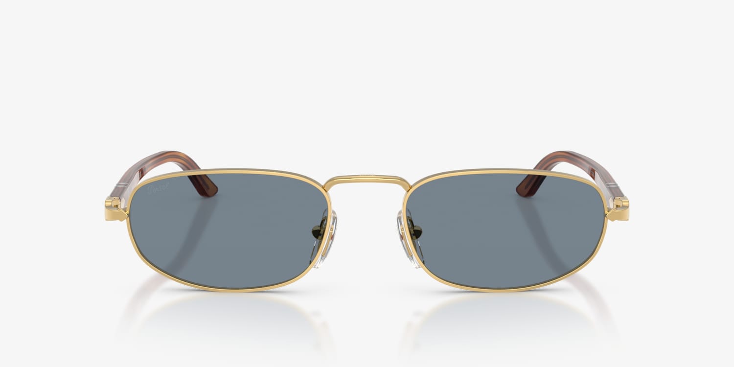 Elevate your eyewear collection with the PO1028S sunglasses from Persol—a masterful blend of innovation and craftsmanship. The sleek gold metal full-rim fronts lend lightweight sophistication, while the pillow-shaped frames balance soft curves with sharp square edges for modern appeal. Premium acetate temples, adorned with Persol's striking 6mm arrow, embody timeless Italian style. The solid blue lenses offer advanced 100% UVA/UVB protection, ensuring effortless versatility for everyday adventures. Adjustable nosepads sunglasses enhance comfort, making these gold sunglasses as functional as they are iconic.