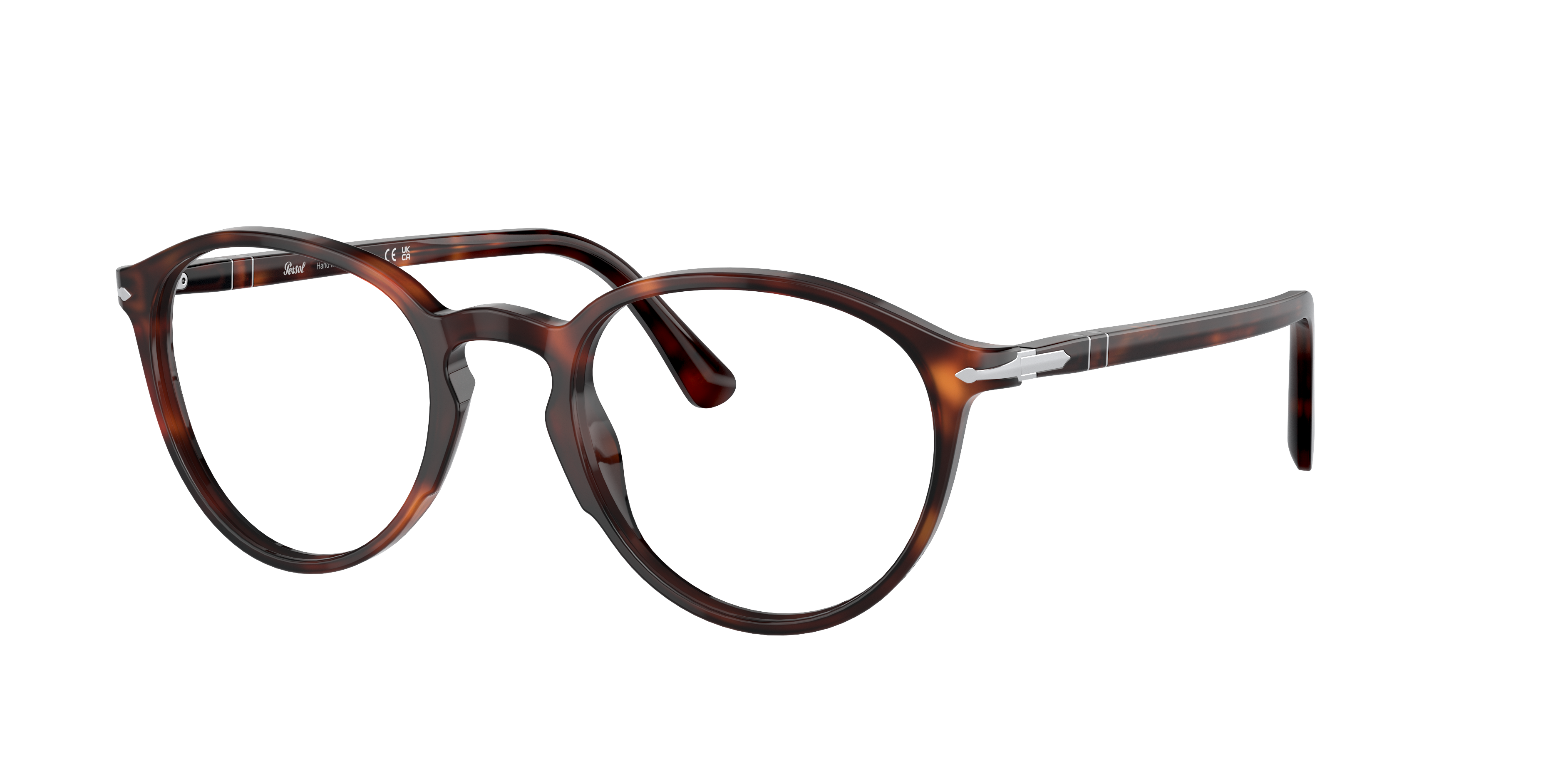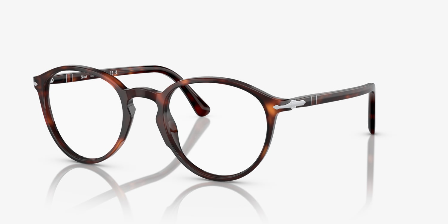 Enhance your style with Persol PO3218V eyeglasses. The polished havana acetate frame, with a keyhole bridge, offers a vintage charm. The phantos shape adds sophistication to any outfit. These frames are crafted for fashionable and comfortable vision. Available with prescription lenses.