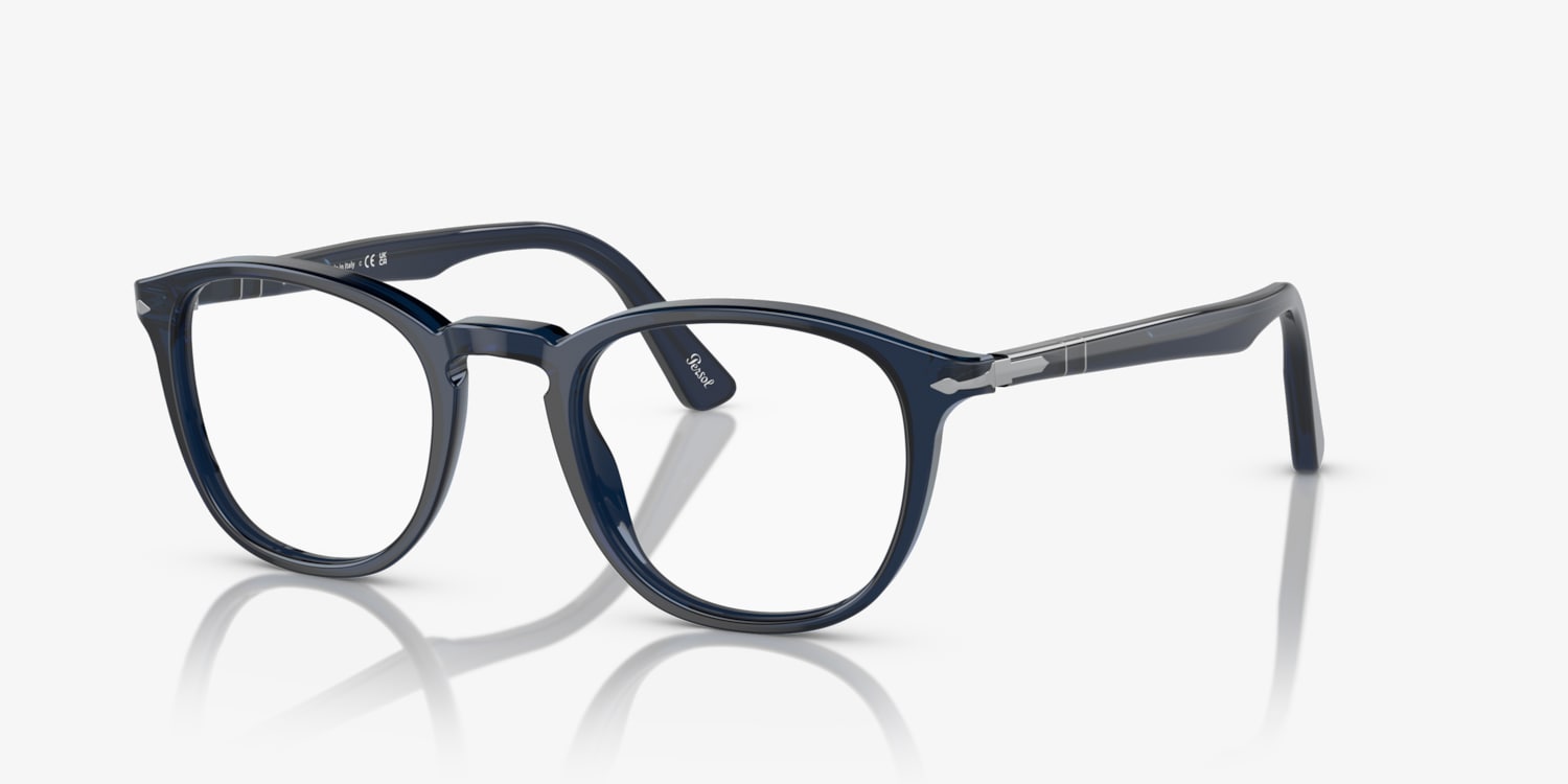 Elevate your fashion and optical standards with Persol PO3143V eyeglasses. The polished, transparent blue acetate frame exudes a sleek and modern appeal. The rectangle shape and keyhole bridge add a touch of vintage charm, making these glasses a versatile choice for any style. These shades are not just chic but also offer an enhanced look while providing optimal vision. Available with prescription lenses.