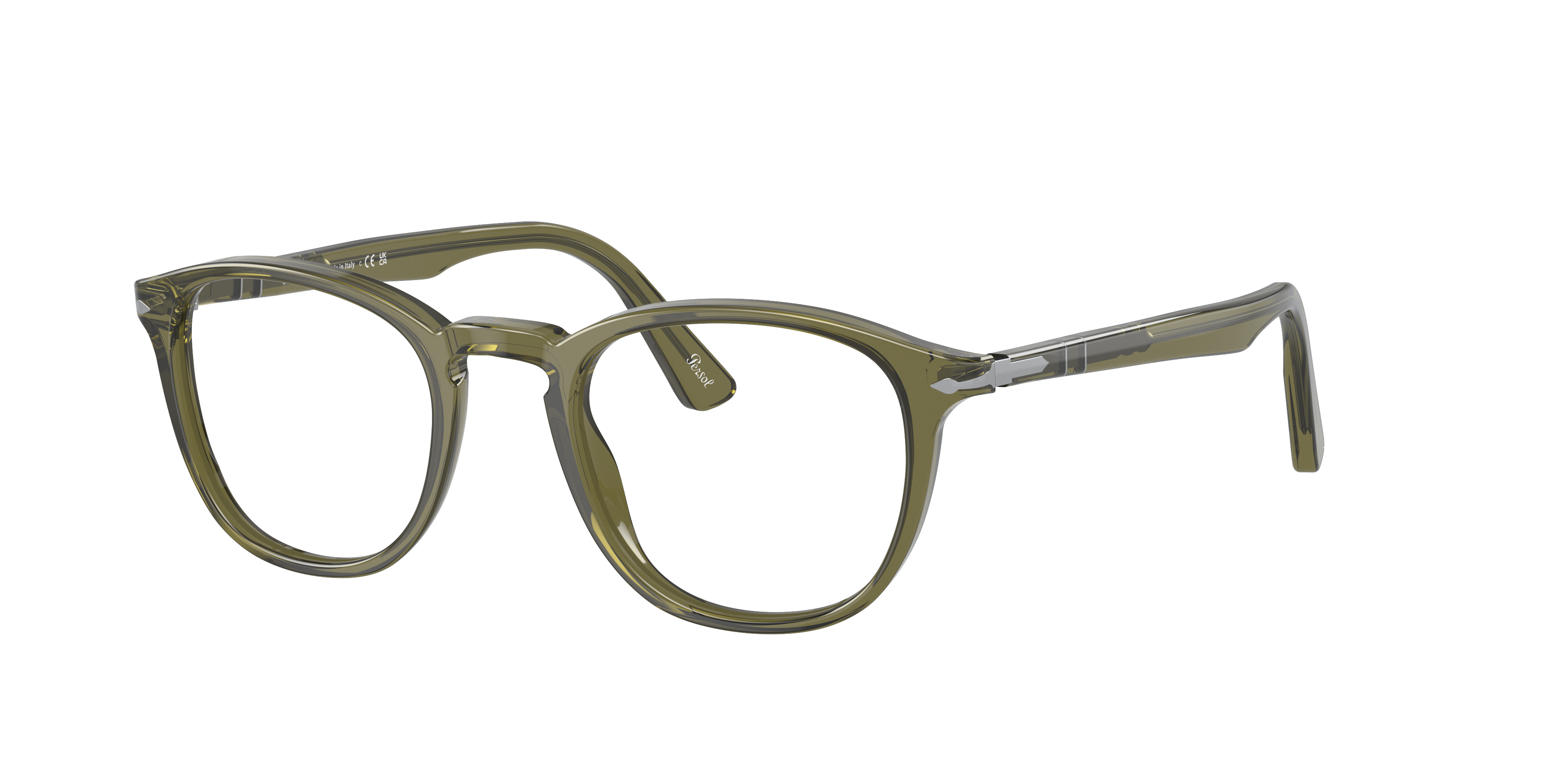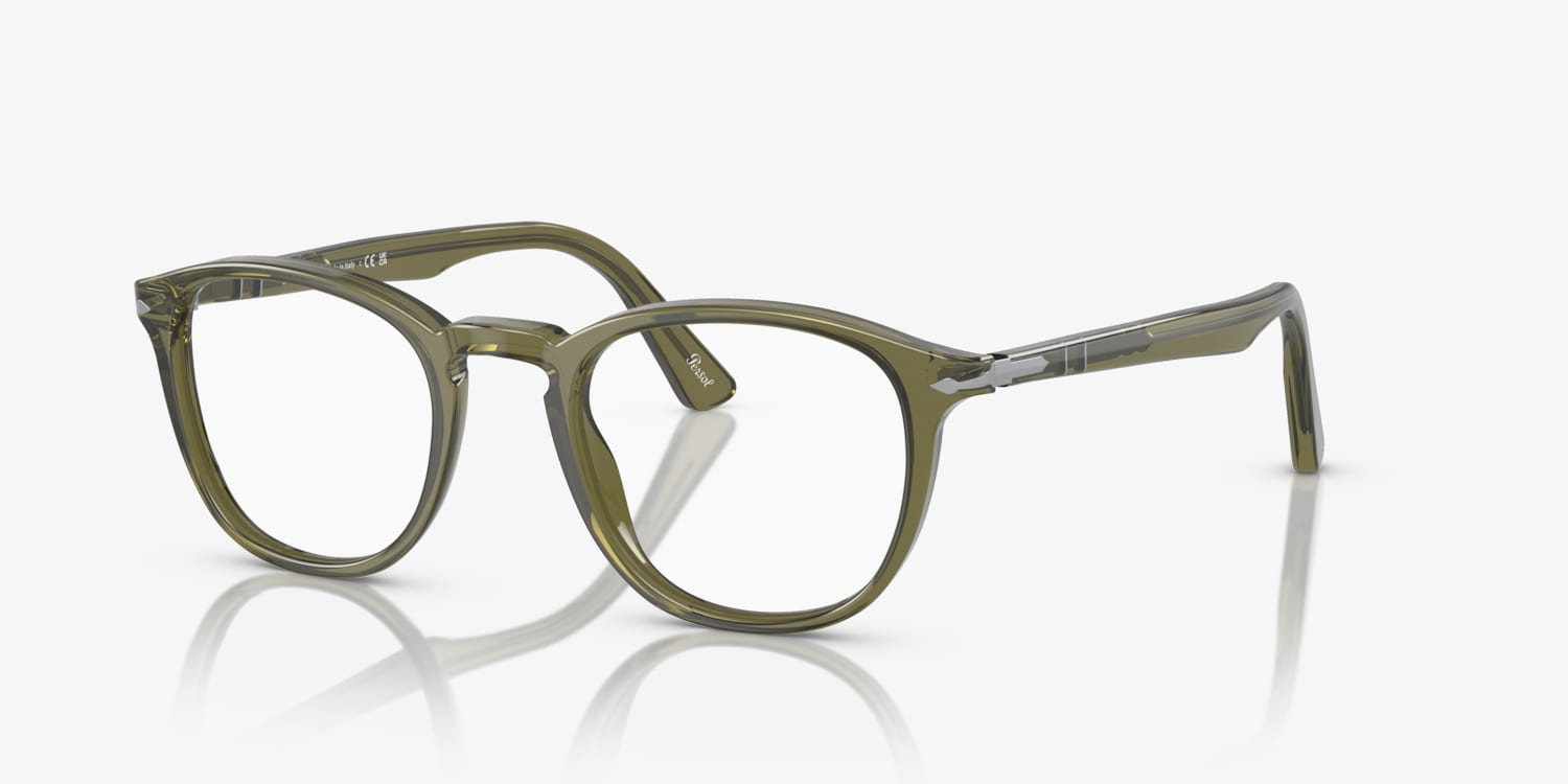 Elevate your look with the Persol PO3143V eyeglasses. The polished olive green transparent acetate frame, combined with a keyhole bridge, adds a touch of sophistication to any outfit. The rectangle shape and black color scheme provide a timeless look that complements any face shape. These glasses offer both style and comfort for everyday wear or special occasions.