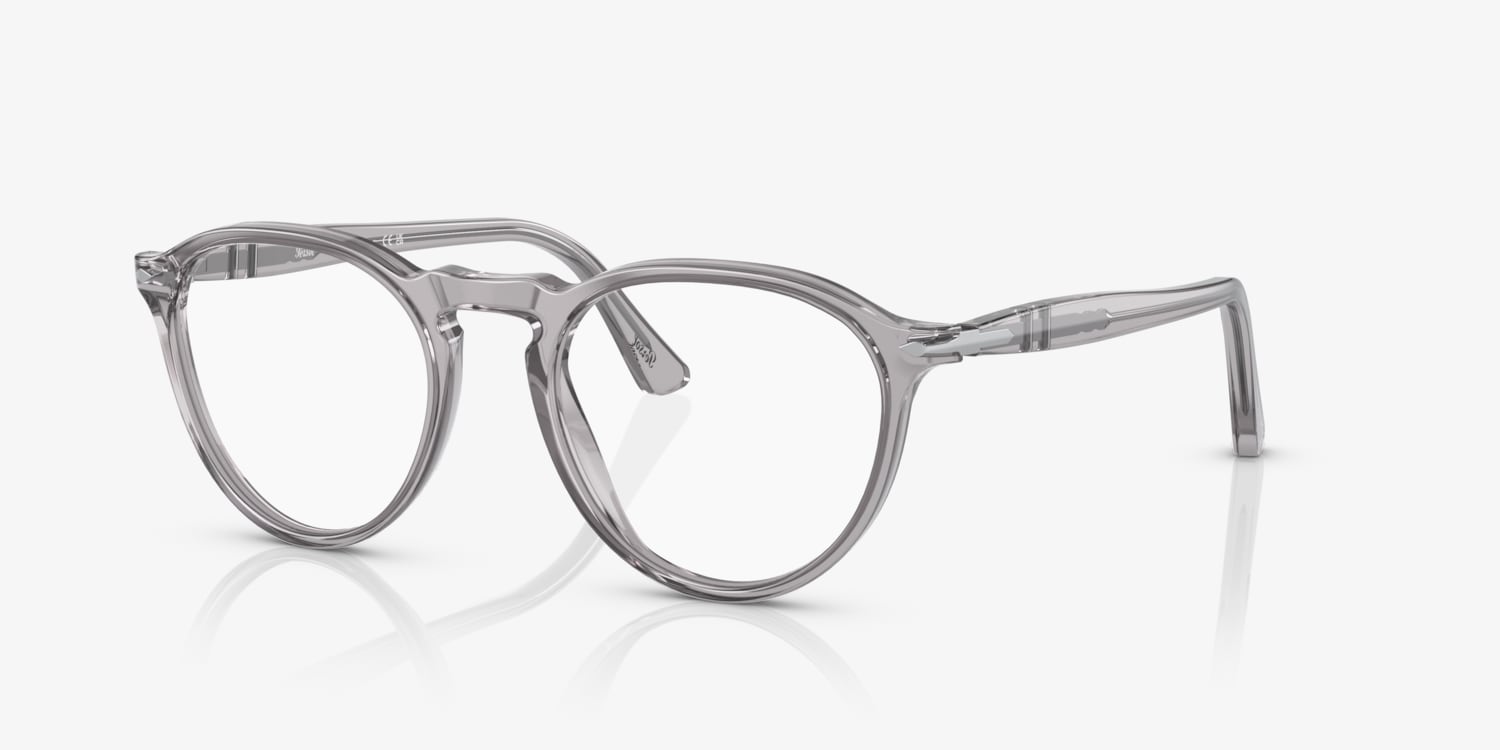 Elevate your style with Persol PO3286V eyeglasses. The polished frame in a unique transparent grey color adds a modern touch to the iconic phantos shape. Crafted from high-quality acetate, these glasses are designed to last. A keyhole bridge adds extra comfort and detail. These shades provide not only a stylish look but also superior functionality. Available with prescription lenses.