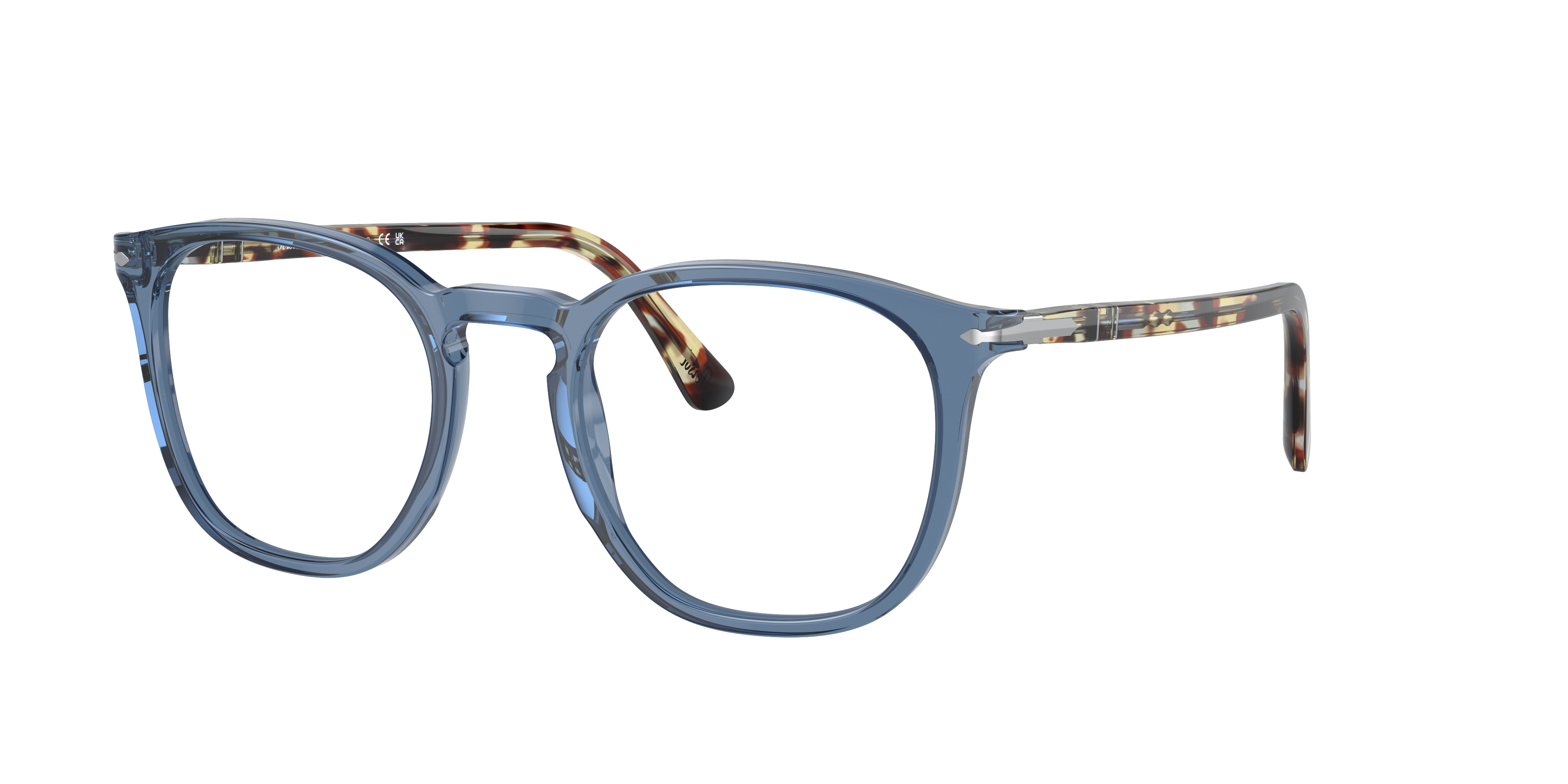 Elevate your style while maintaining a high level of performance with Persol PO3318V eyeglasses. The polished black frame, crafted from durable acetate and featuring the iconic phantos shape, features a unique keyhole bridge for added comfort. The transparent navy color adds a touch of sophistication to the overall design. These glasses are not only stylish but also versatile. Available with prescription lenses.