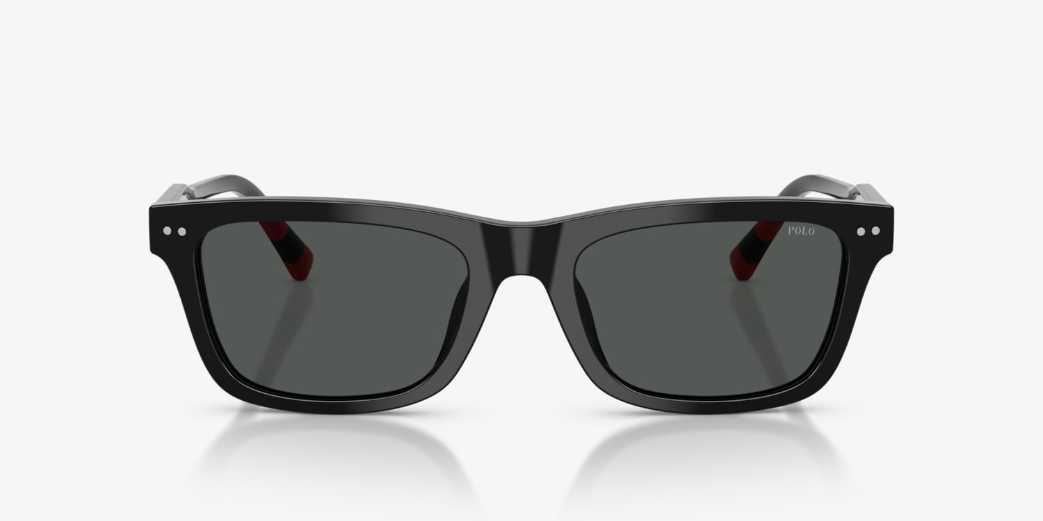 Embrace contemporary style with the Polo Ralph Lauren PH4240U black sunglasses. Crafted with pillow-shaped plastic frames, these Polo Ralph Lauren sunglasses showcase soft, rounded edges paired with square-like contours for a balanced design. The grey lenses provide flawless vision, while the acetate temples feature rugby-inspired stripes and the iconic Pony Player logo for a sporty, sophisticated touch. Finished in classic black, this pair merges heritage and modernity seamlessly.