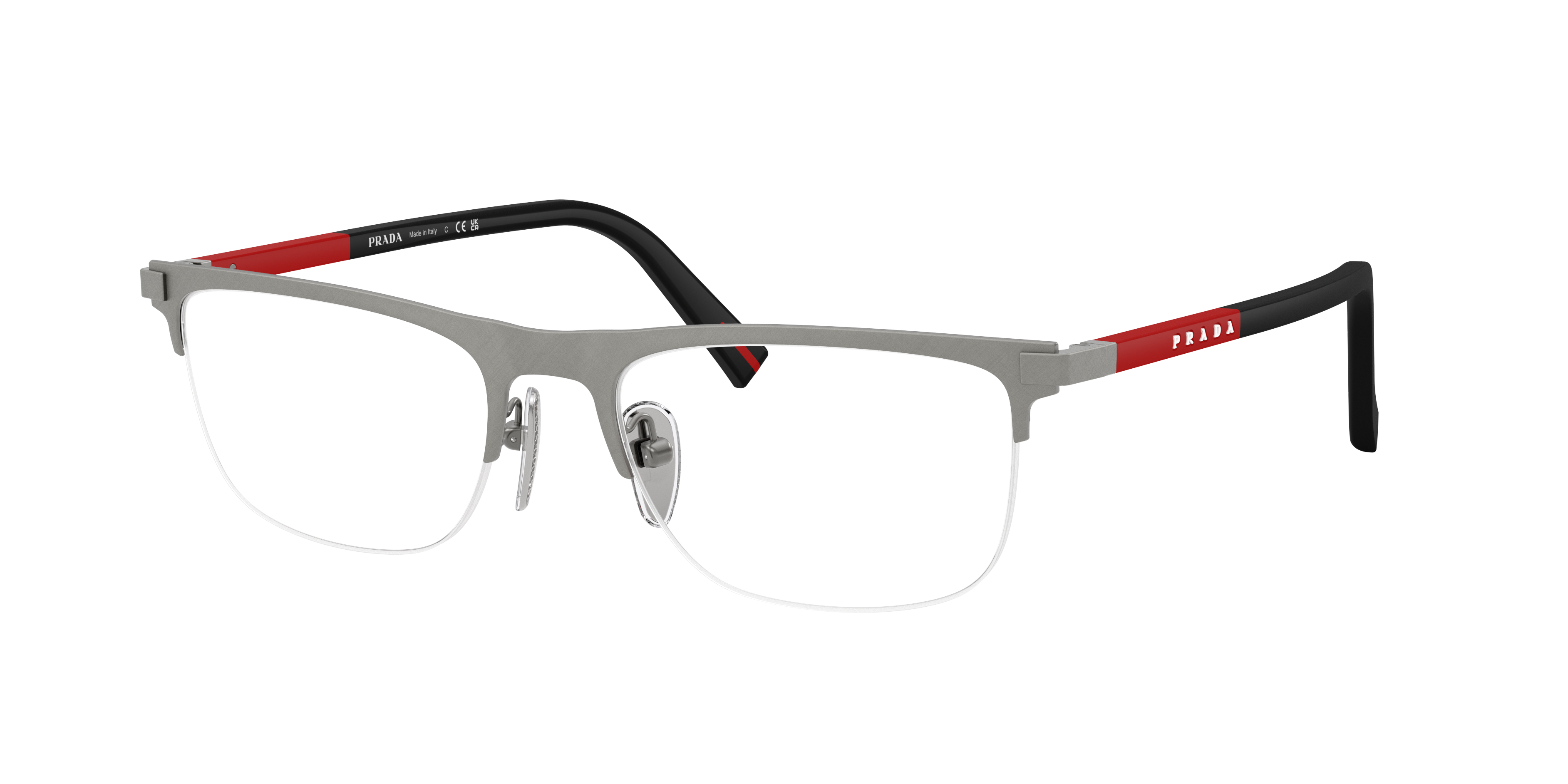 Experience the interplay of precision and style in Prada Linea Rossa PS 50RV eyeglasses. These shades features a pillow shape that is accentuated by a matte brushed lead frame made of durable metal. The frame color adds a touch of sophistication, making these glasses a versatile accessory for any outfit. With their timeless design and impeccable craftsmanship, these frames are a must-have for all fashion-forward individuals. Available with prescription lenses.