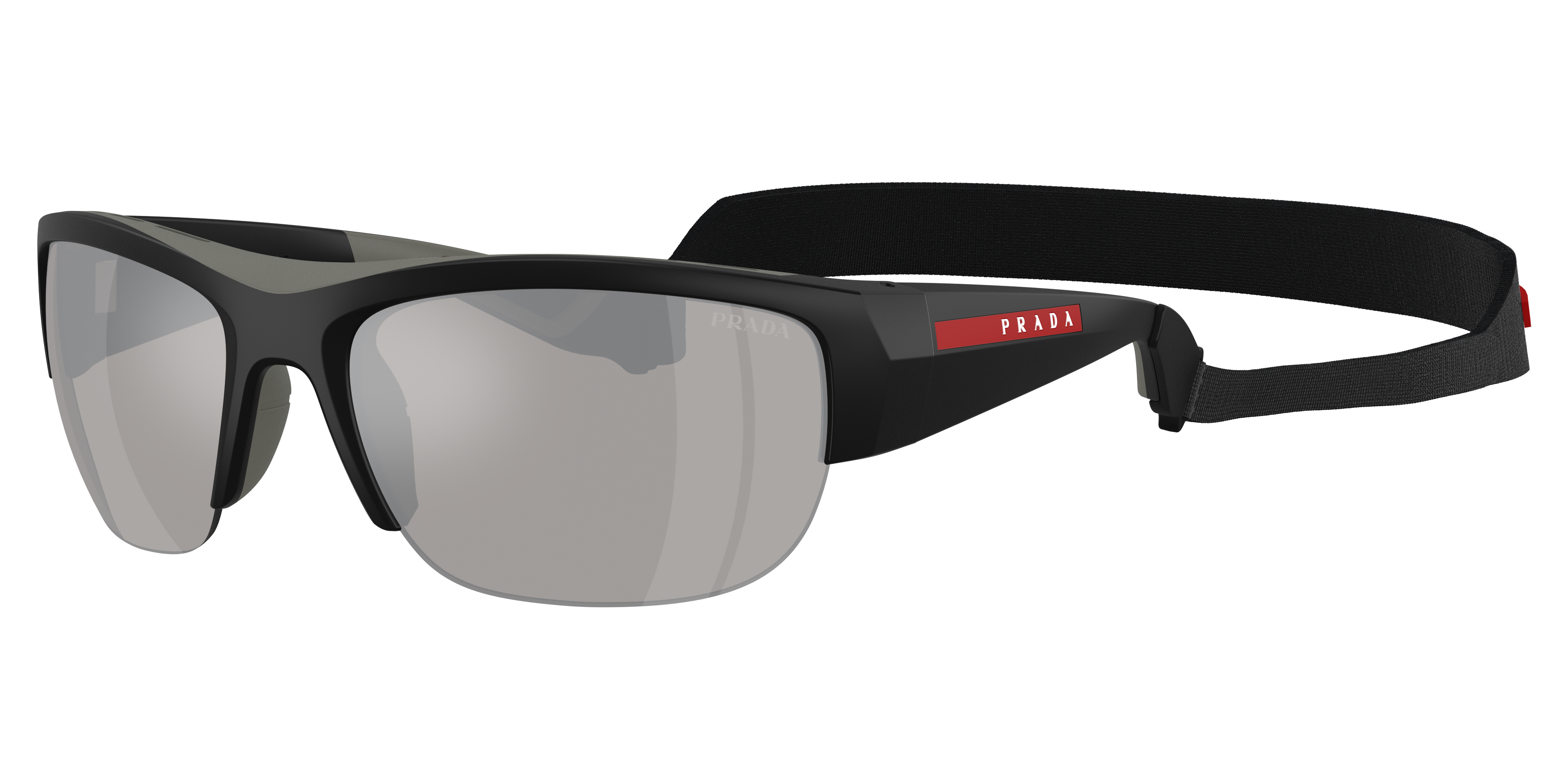 Experience the perfect balance of style and performance with Prada Linea Rossa PS A01S in nero opaco matte black frame. The pillow shape, combined with the sleek frame color, creates a modern and stylish look. The light grey mirror silver lenses provide excellent protection against glare and enhance visual clarity. These shades are not only stylish but also practical. Available with prescription lenses.