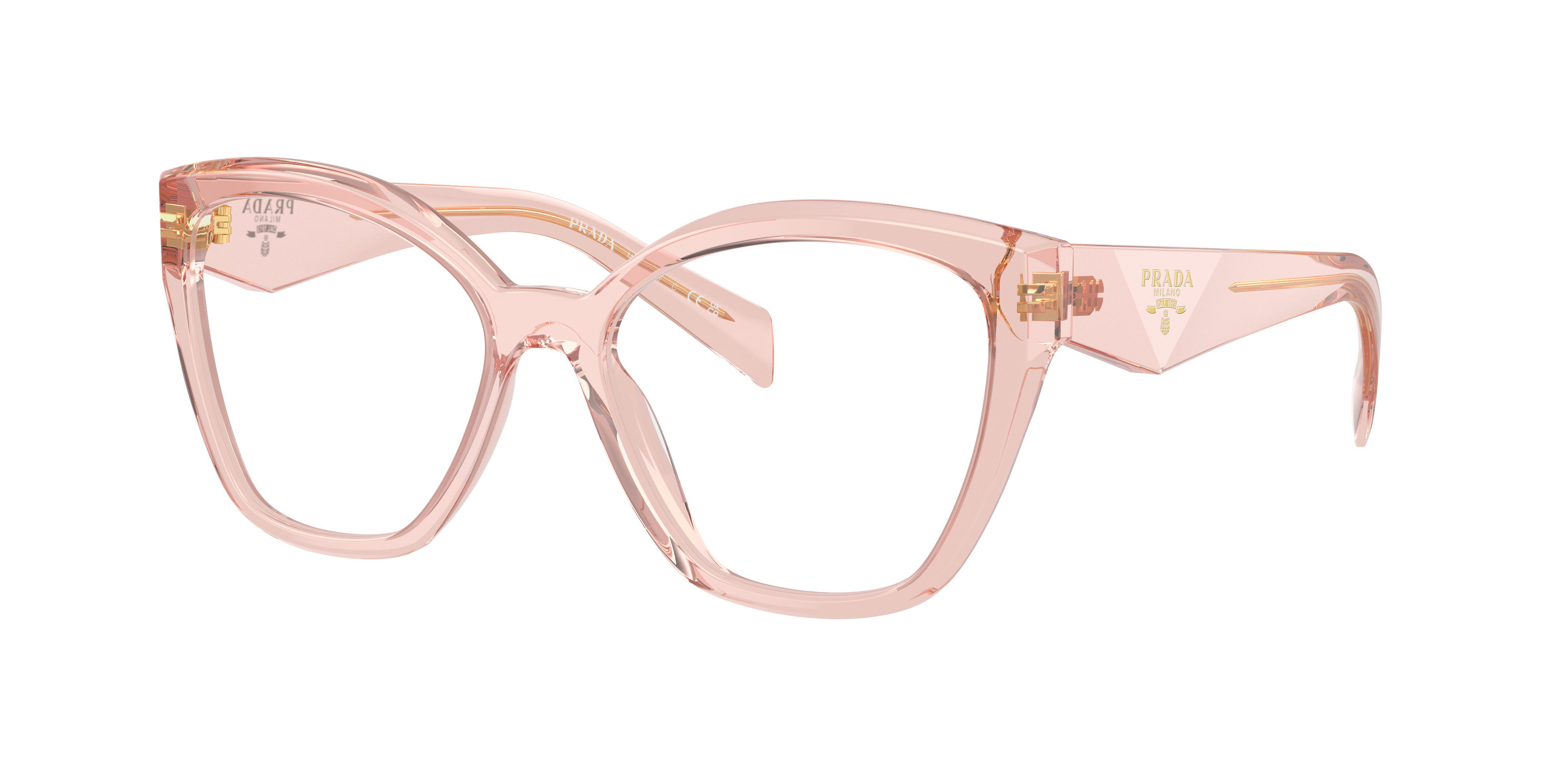 Discover the stylish and functional design of Prada PR 20ZV eyeglasses, boasting an irregular frame shape that adds a unique touch to your look. These frames are crafted from durable and lightweight acetate material, providing both comfort and longevity. The transparent peach hue with black accents on the temples exudes elegance and sophistication. Elevate your style and make a bold fashion statement with these glasses that not only enhance your vision but also showcase your impeccable taste. Available with prescription lenses.