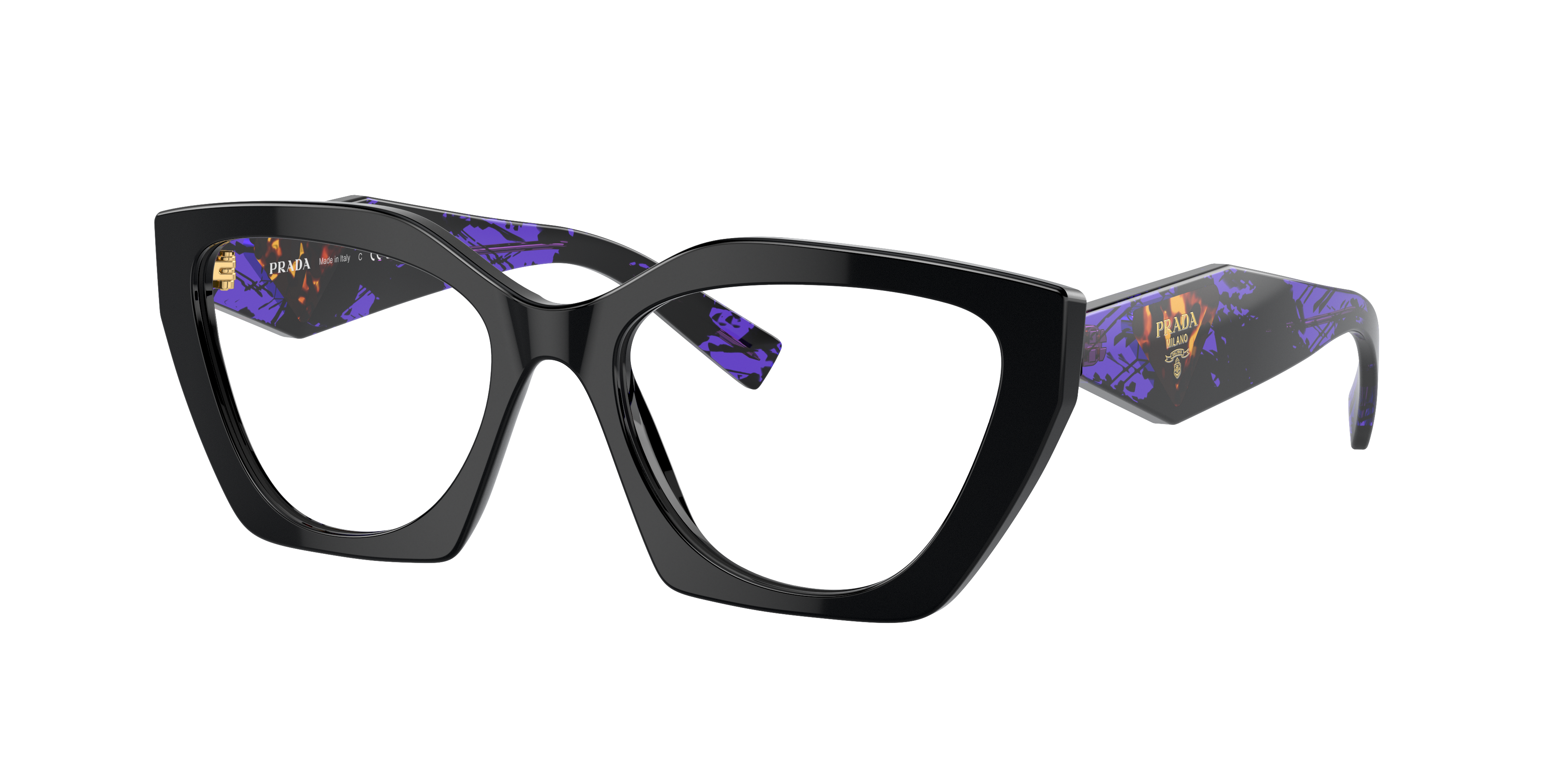 Immerse yourself in the world of optical fashion with Prada PR 09YV. These irregular-shaped glasses feature a polished black acetate frame that adds a touch of sophistication to any look. Experience the unique blend of style and functionality offered by these designer frames. Available with prescription lenses.