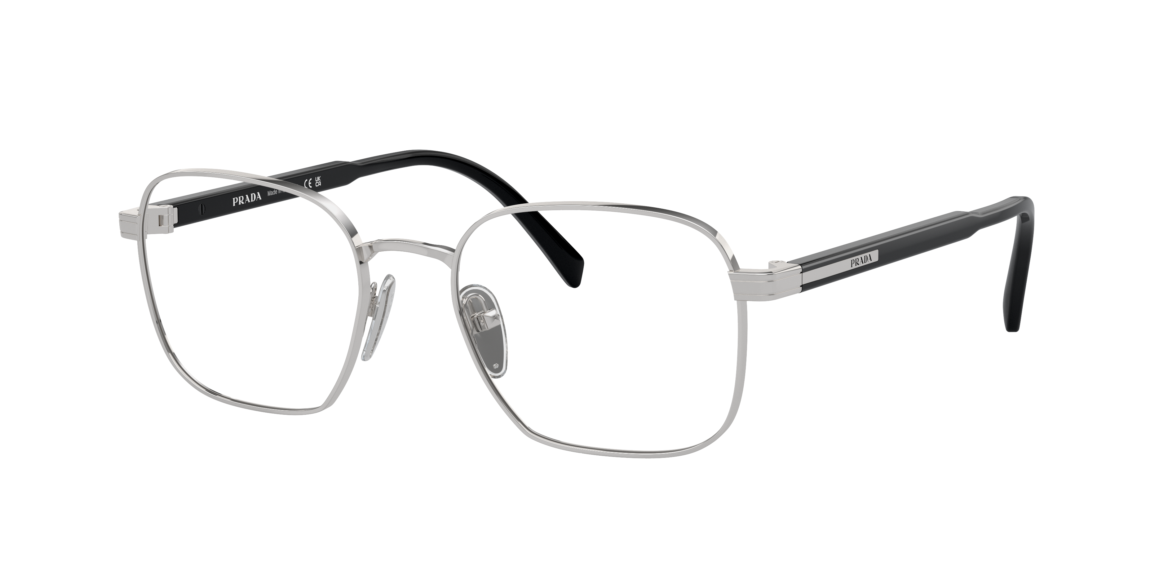 Immerse yourself in the ultimate expression of opulence and refinement with Prada PR A55V rectangular optical glasses. The meticulously fashioned frame shape, crafted from sturdy metal, presents a contemporary and streamlined aesthetic. The lustrous silver hue of the rectangular frame infuses an air of grace into every ensemble. These glasses boast a glossy finish that elevates their allure. Embrace your unique fashion sense while remaining faithful to your personal vision with these fashionable rectangle frames. Available with prescription lenses.