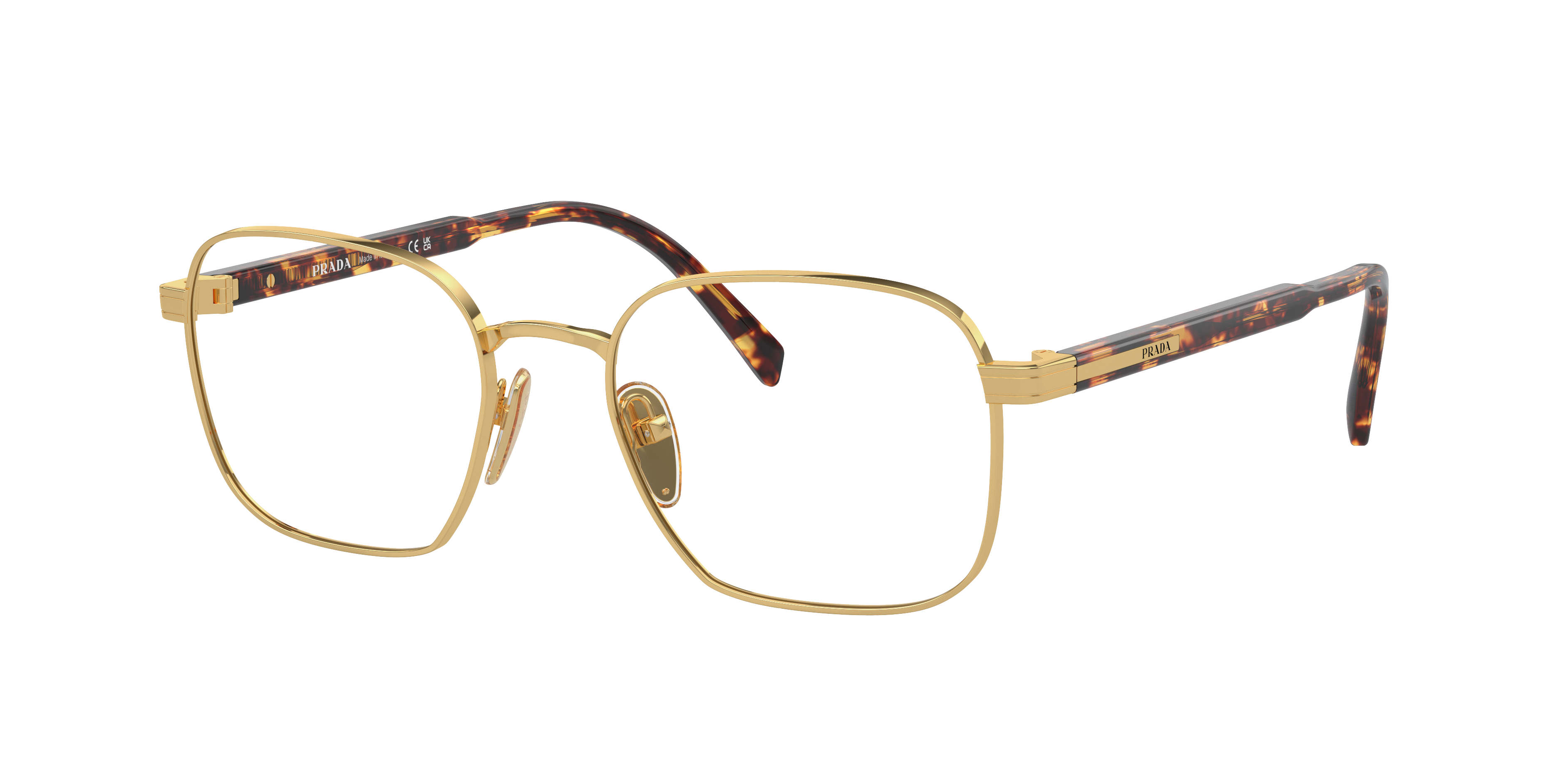 Elevate your fashion while optimizing utility with Prada PR A55V eyeglasses. The rectangle shape and polished gold metal frame offers a timeless look that complements any outfit. These shades features a unique design, incorporating a black rim around the lenses for added visual appeal. The gold color finish is a versatile choice that can be worn with any attire. Available with prescription lenses.