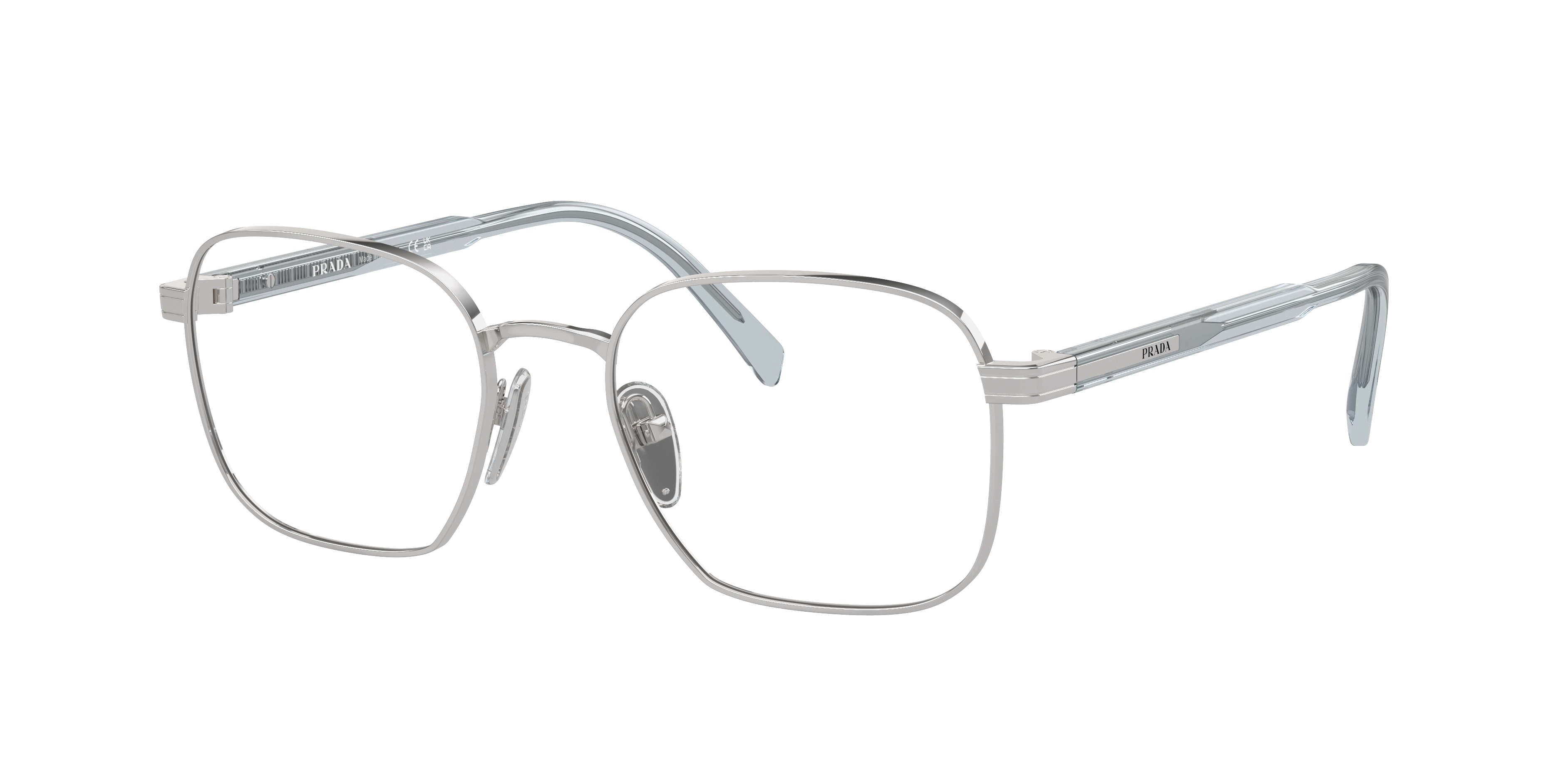 Elevate your fashion while optimizing utility with Prada PR A55V optical glasses. The rectangle shape and polished metal frame in a timeless silver color offer a sleek, modern look. The frame is designed to be durable and comfortable for everyday wear. These glasses feature a unique design that makes them stand out from the crowd. With their impeccable style and quality, these frames are a must-have accessory for any fashion-forward individual. Available with prescription lenses.