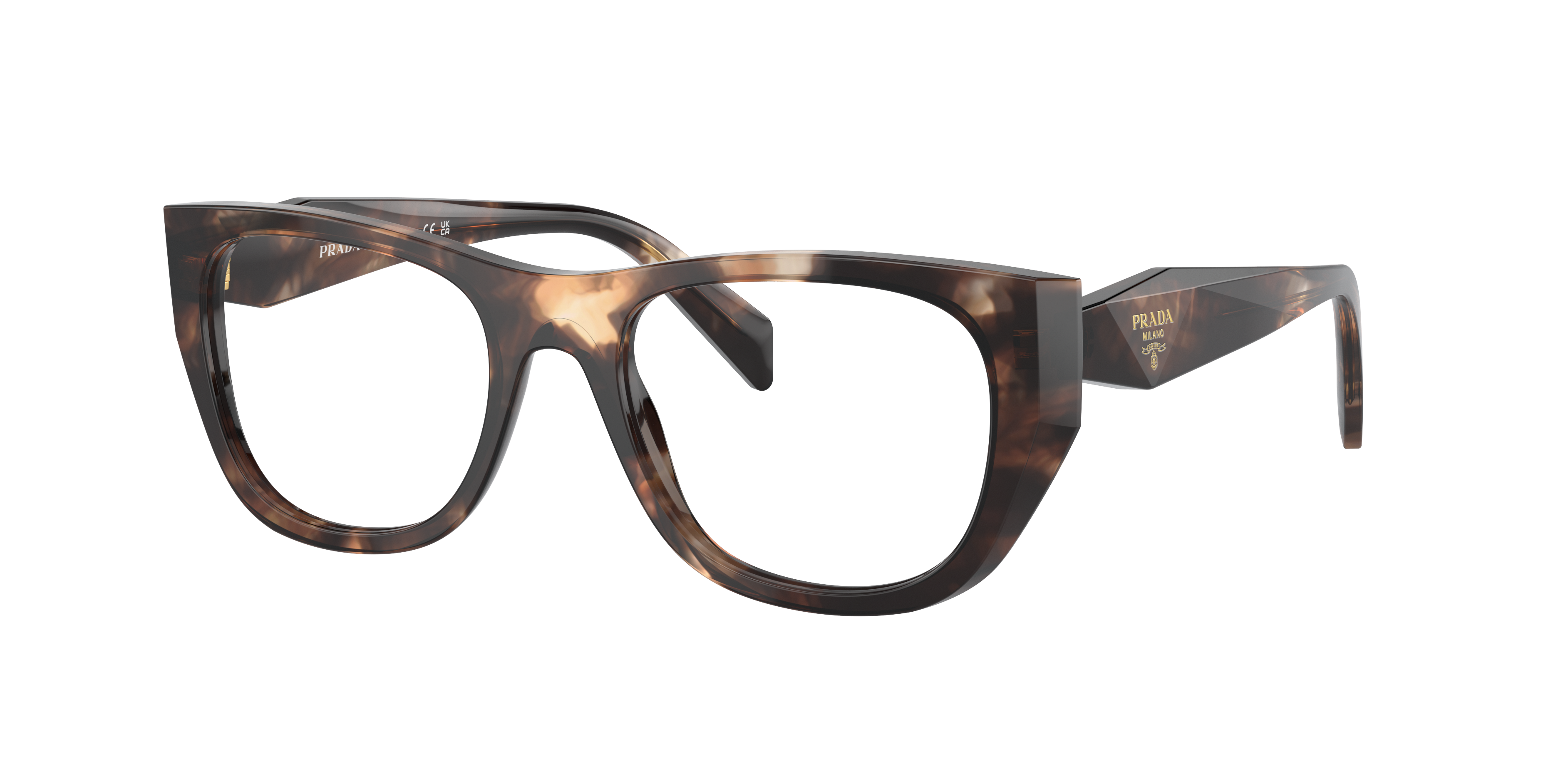 Introducing the Prada PR A18V optical glasses, a perfect blend of style and comfort. Featuring an irregular shape with a polished finish, these glasses exude elegance and sophistication. The frame is made of acetate in a stunning caramel tortoise color, adding a touch of uniqueness to your look. These frames are not only stylish but also practical. Embrace your individuality with these Prada optical glasses.