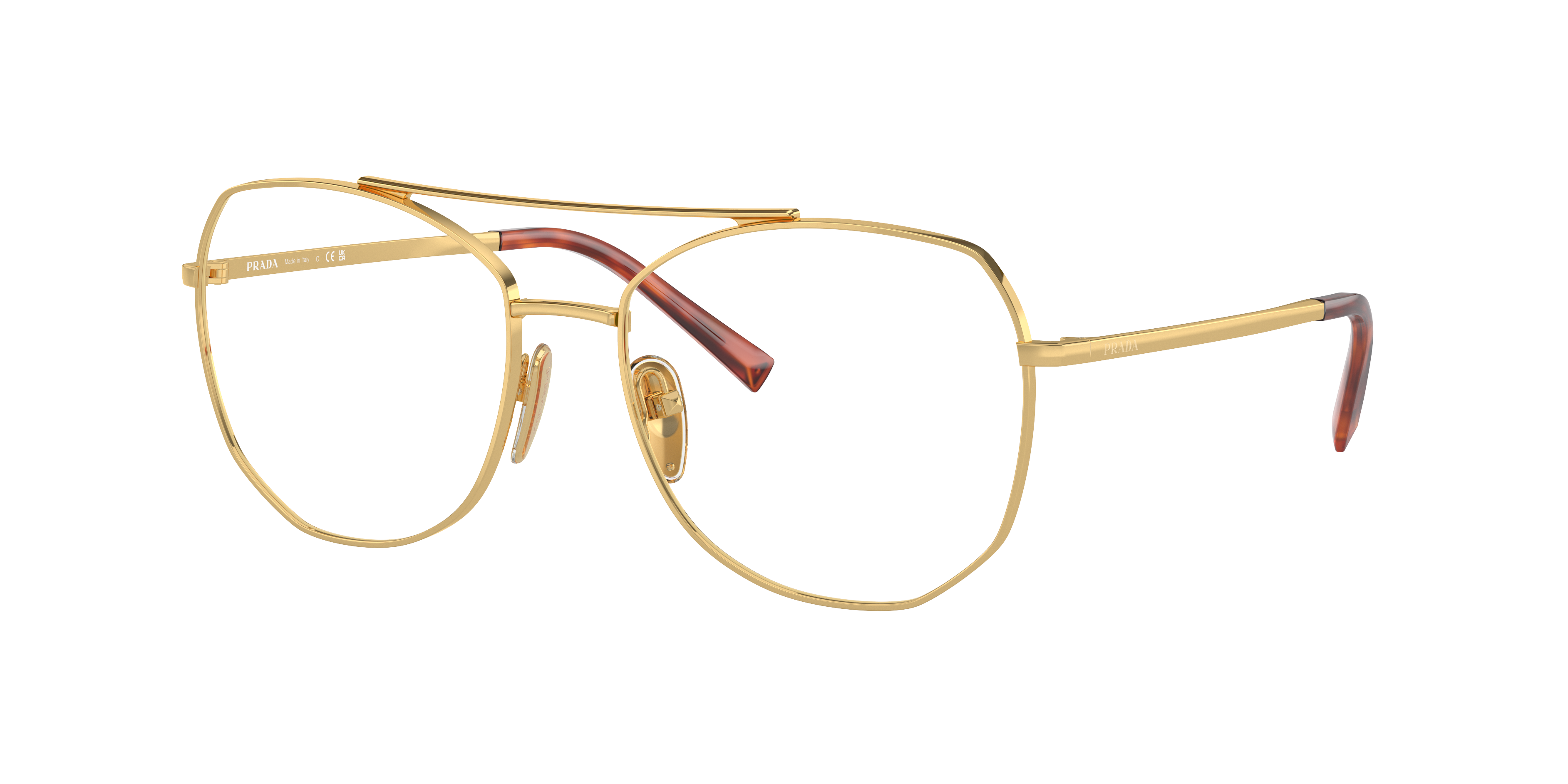 Elevate your fashion quotient with these irregular shaped optical glasses from Prada. The polished gold frame, crafted from durable steel, is a versatile choice for those seeking both style and functionality. The unique design of these frames adds a touch of sophistication to any outfit. These glasses are not only stylish but also practical. Embrace your individuality and enhance your look with these Prada PR A58V optical glasses.