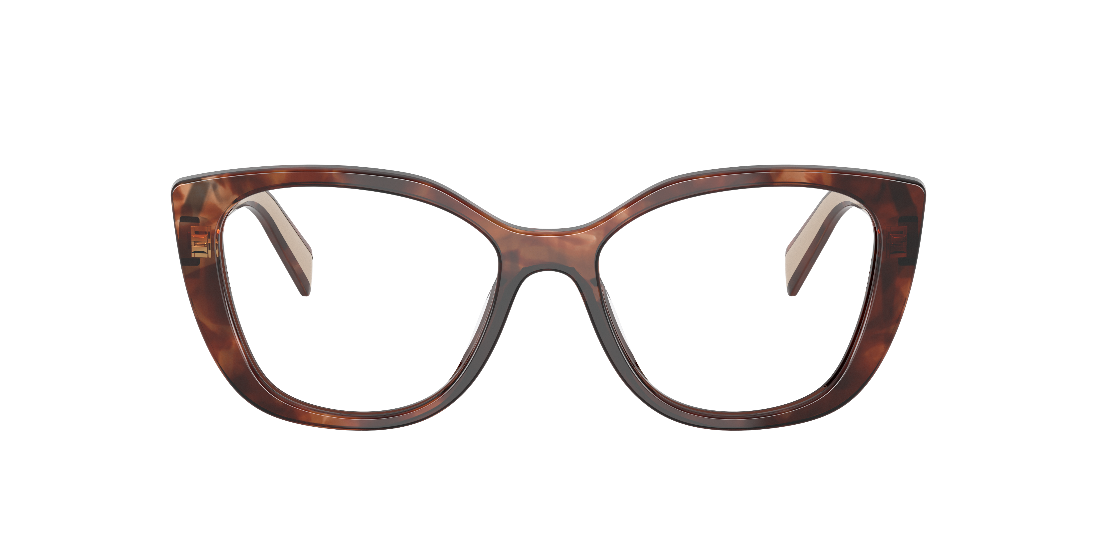 Elevate your style with the Prada PR B04V optical glasses. Crafted from durable plastic, the cat-eye frames feature a sophisticated full-rim design in a chic brown and tan colorway. The acetate temples showcase a striking geometric two-toned design, adorned with the signature Prada Milano logo. These Prada glasses offer a perfect blend of luxury and effortless wearability.