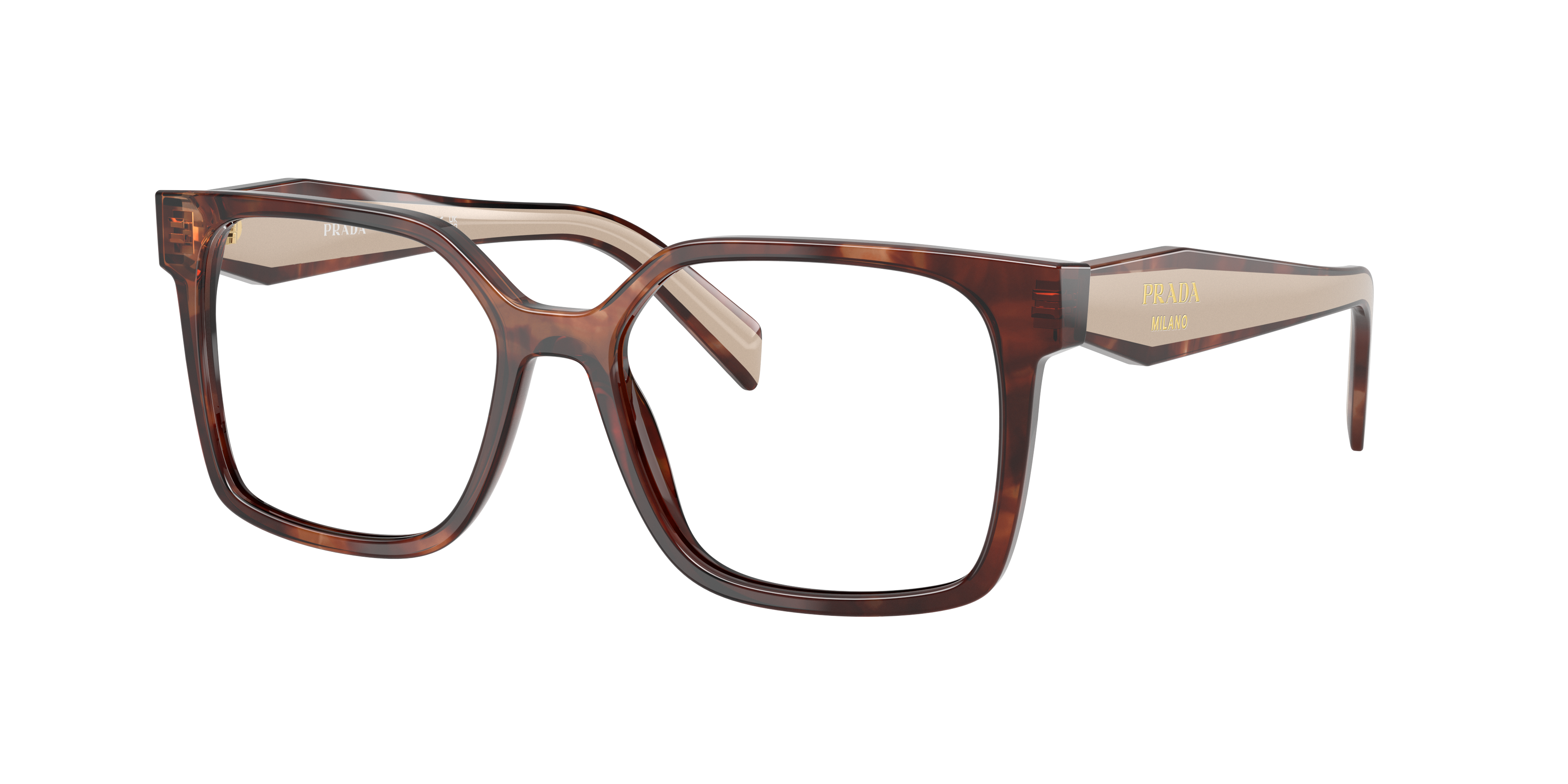 Discover the meticulous craftsmanship that unites style and optical functionality in Prada PR B03V eyeglasses. The rectangle shape, crafted from durable acetate, offers a modern and sophisticated look. The polished havana caramel frame color adds a touch of elegance to any outfit. These glasses are not only stylish but also versatile. Embrace your unique sense of style with these Prada frames. Available with prescription lenses.