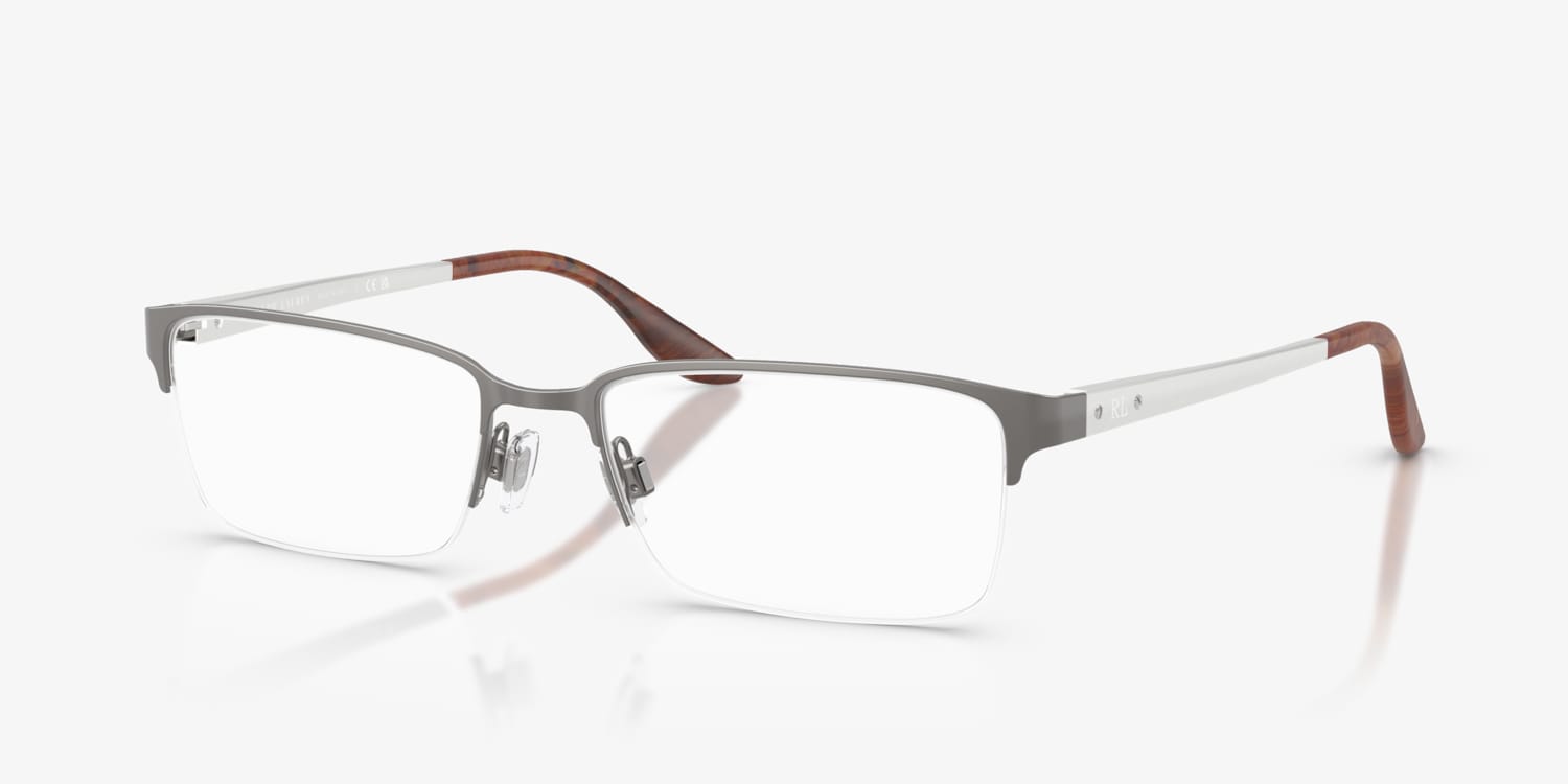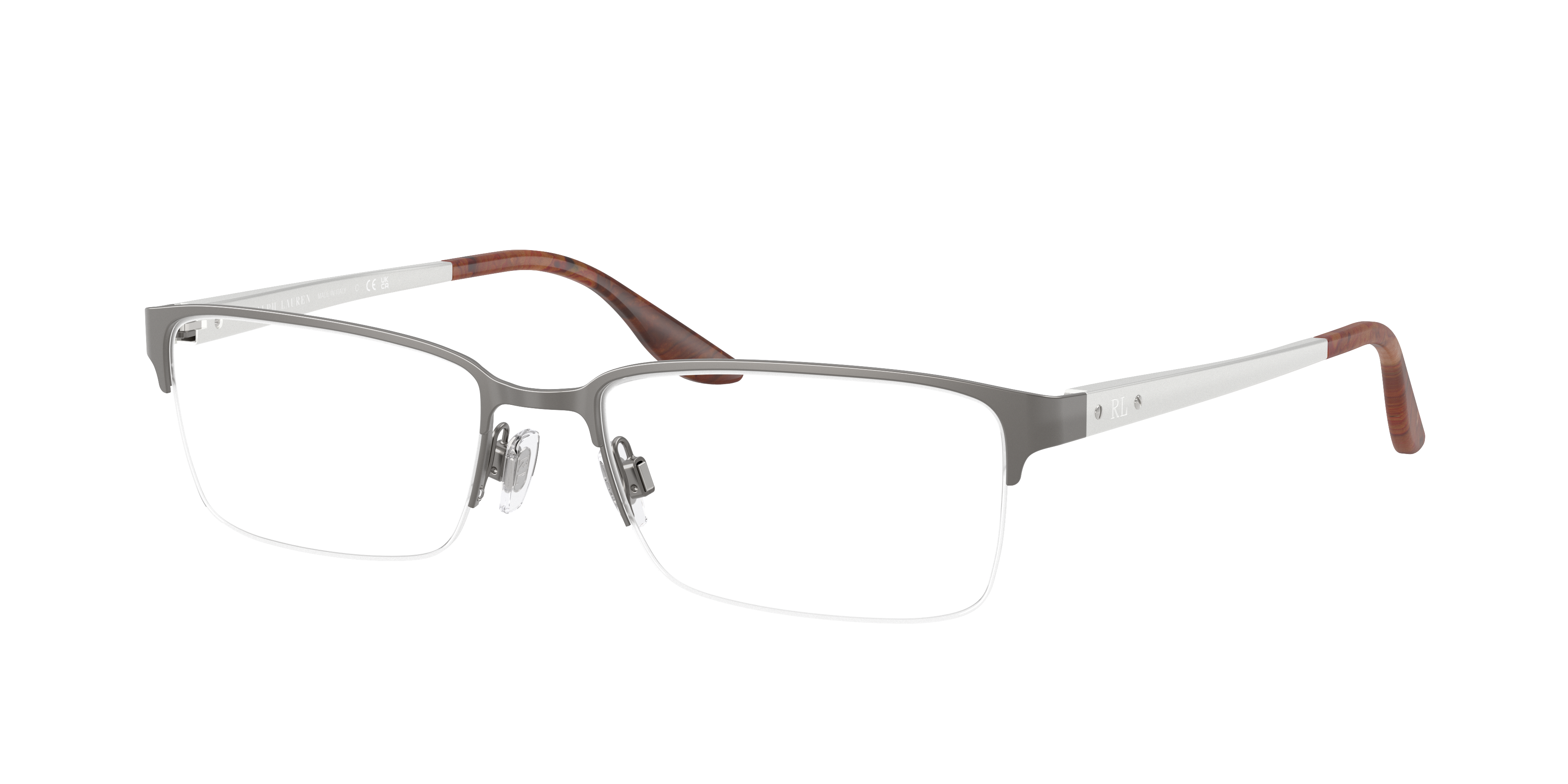 Elevate your style with the Ralph Lauren RL5089 eyeglasses. Crafted from metal, these rectangle-shaped frames are durable and lightweight. The semi-shiny gunmetal finish adds a touch of sophistication, while the matte black color gives it a modern edge. These glasses feature a versatile design that makes them perfect for everyday wear. Embrace timeless elegance with these stunning shades. Available with prescription lenses.
