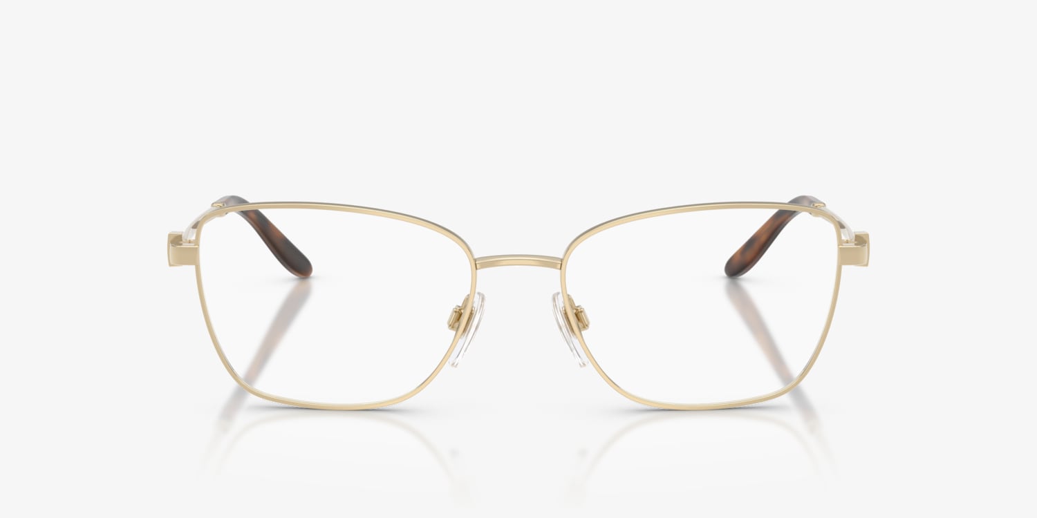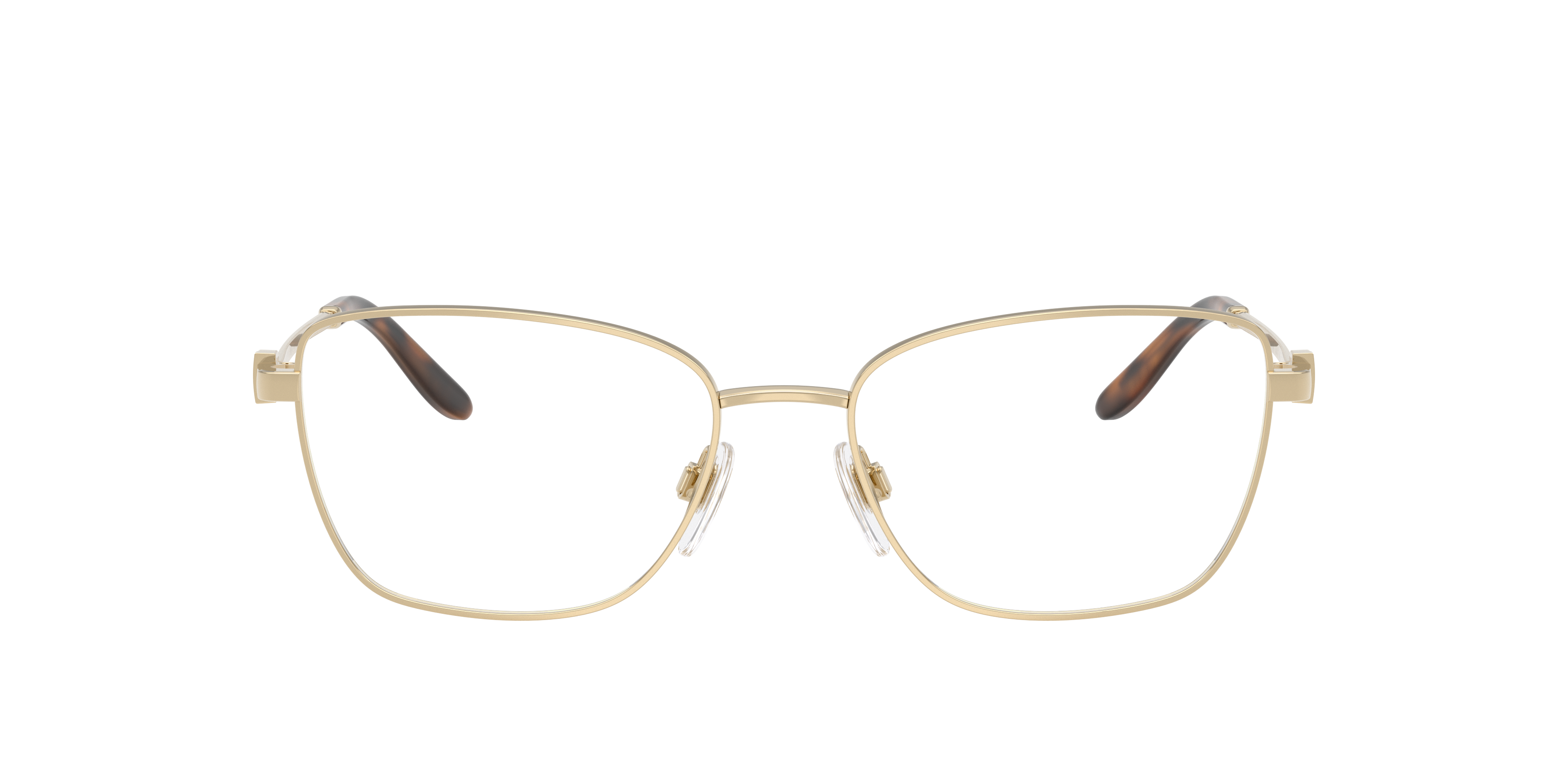 The Ralph Lauren RL5136 optical glasses feature pillow-shaped frames with soft, rounded edges and square-like contours for a balanced, modern design. Crafted from lightweight gold metal, they ensure effortless wear, while frames with adjustable nosepads enhance comfort. Oversized frames are elevated by a reimagined stirrup detail on the temples, paired with refined acetate tips adorned with the Ralph Lauren script logo for a touch of understated luxury.