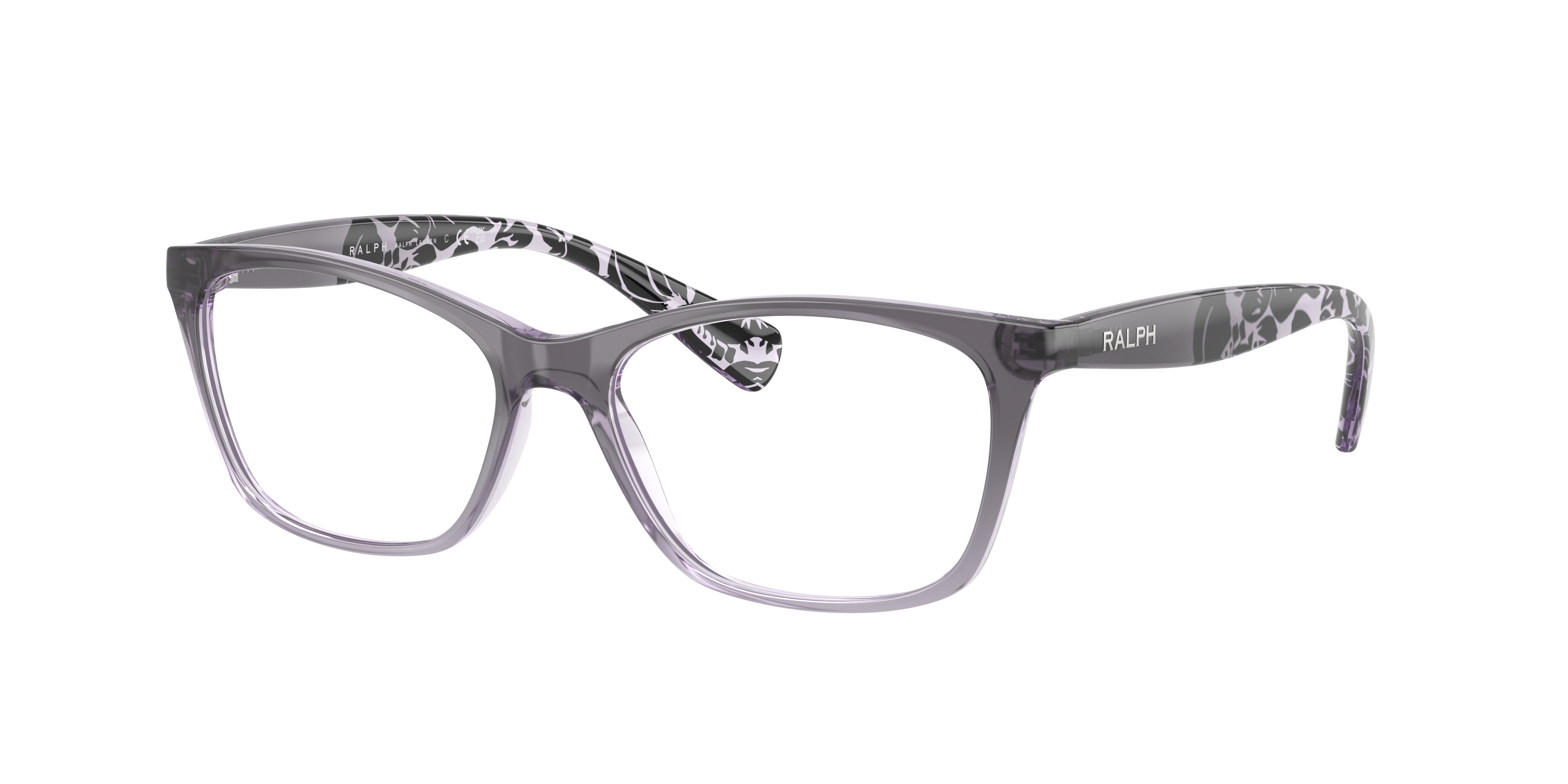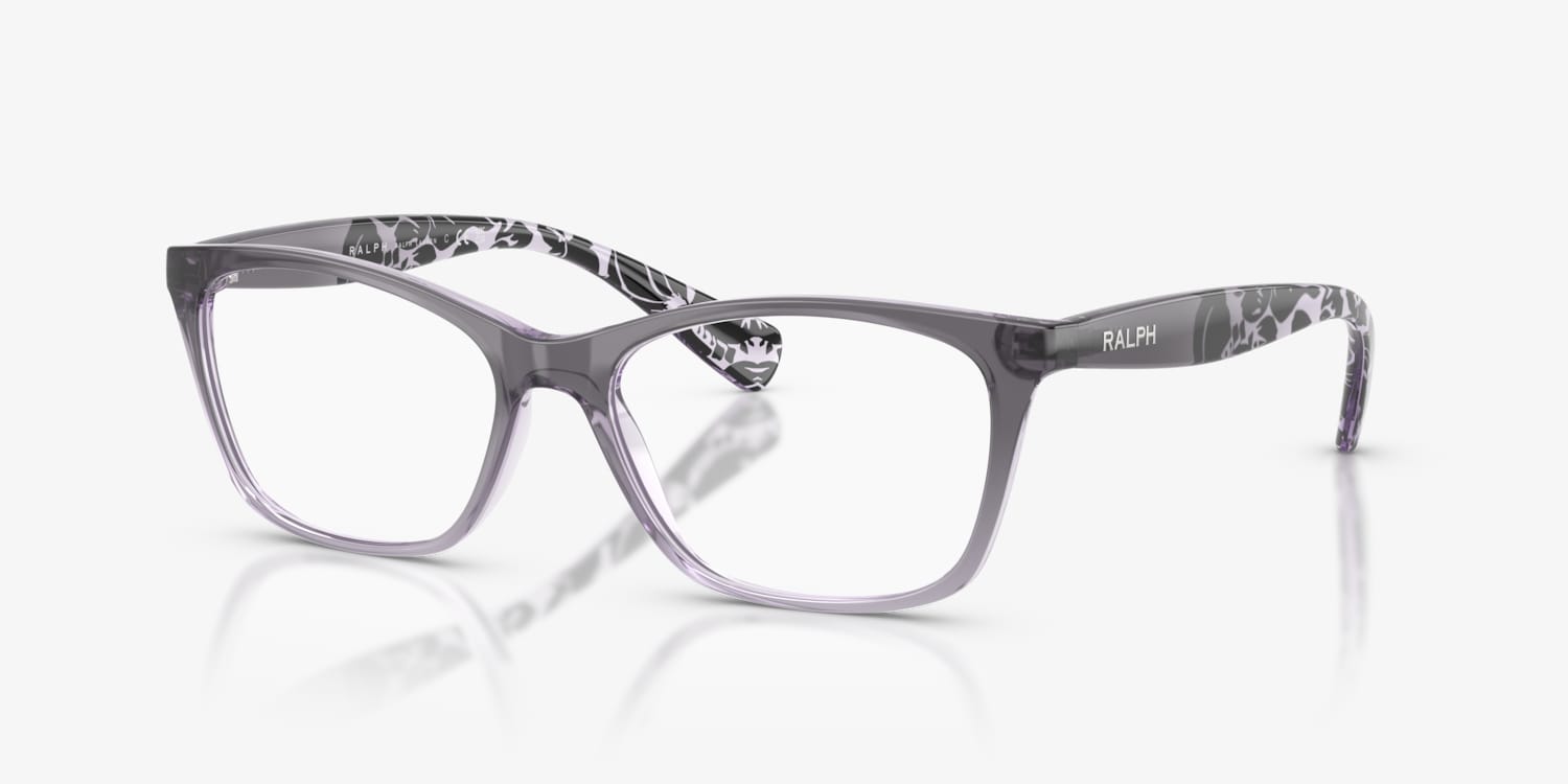 Elevate your fashion with the Ralph RA7071 eyeglasses. The polished, shiny gradient grey frame color adds a touch of sophistication to the cat eye shape, making these glasses a versatile choice for any style. Crafted from durable material, these frames are designed to last. Embrace your unique sense of style with these eyeglasses from Ralph. Available with prescription lenses.