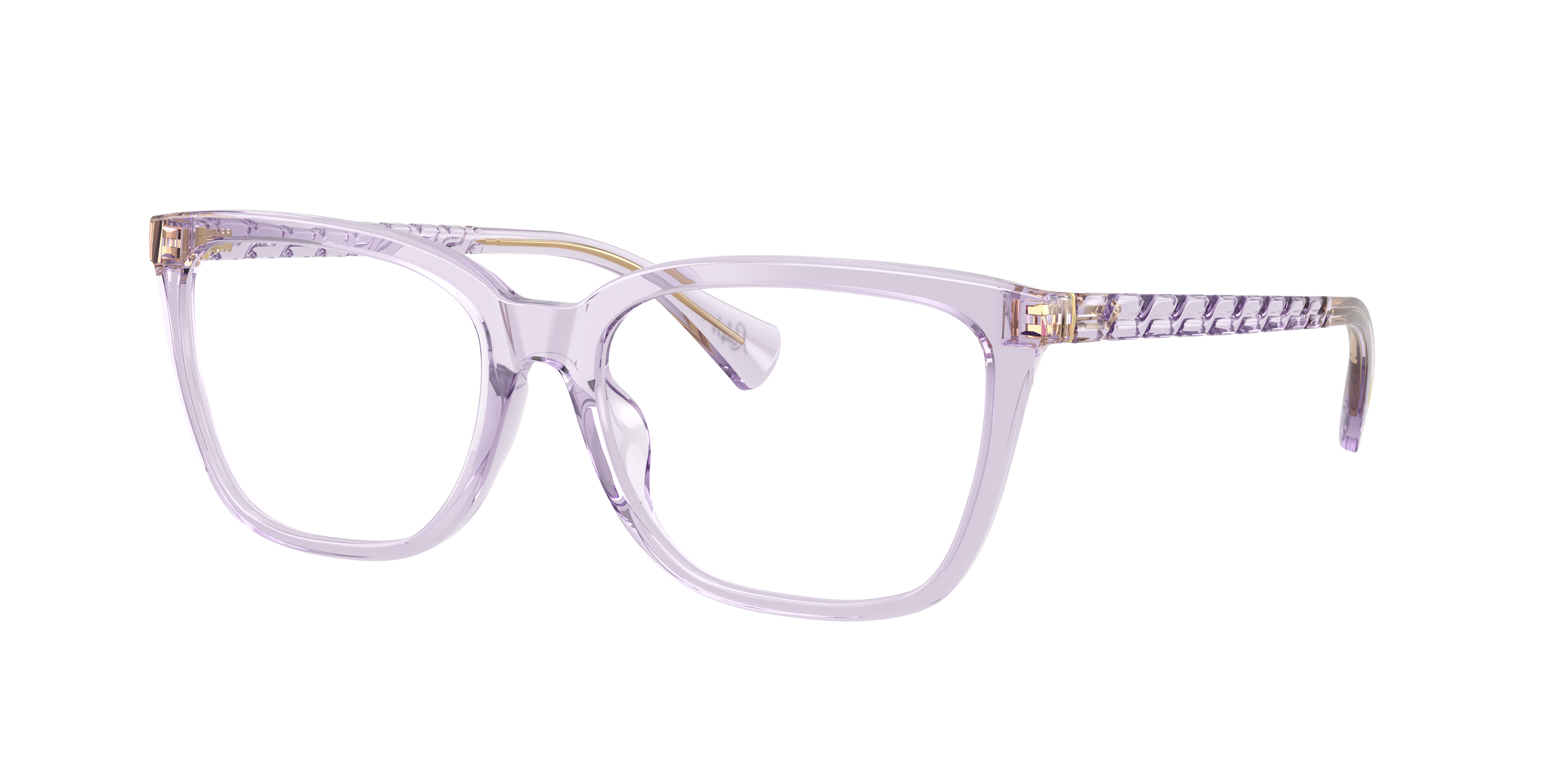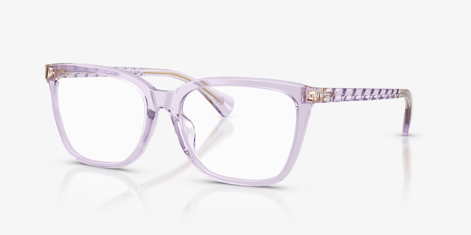 Experience the exquisite blend of style and optical functionality with Ralph RA7178U eyeglasses. The butterfly shape and polished finish give these frames a unique and stylish look. The shiny transparent lillac frame color adds a touch of elegance, making these glasses a versatile accessory for any outfit. These shades are not only fashionable but also practical. Available with prescription lenses.