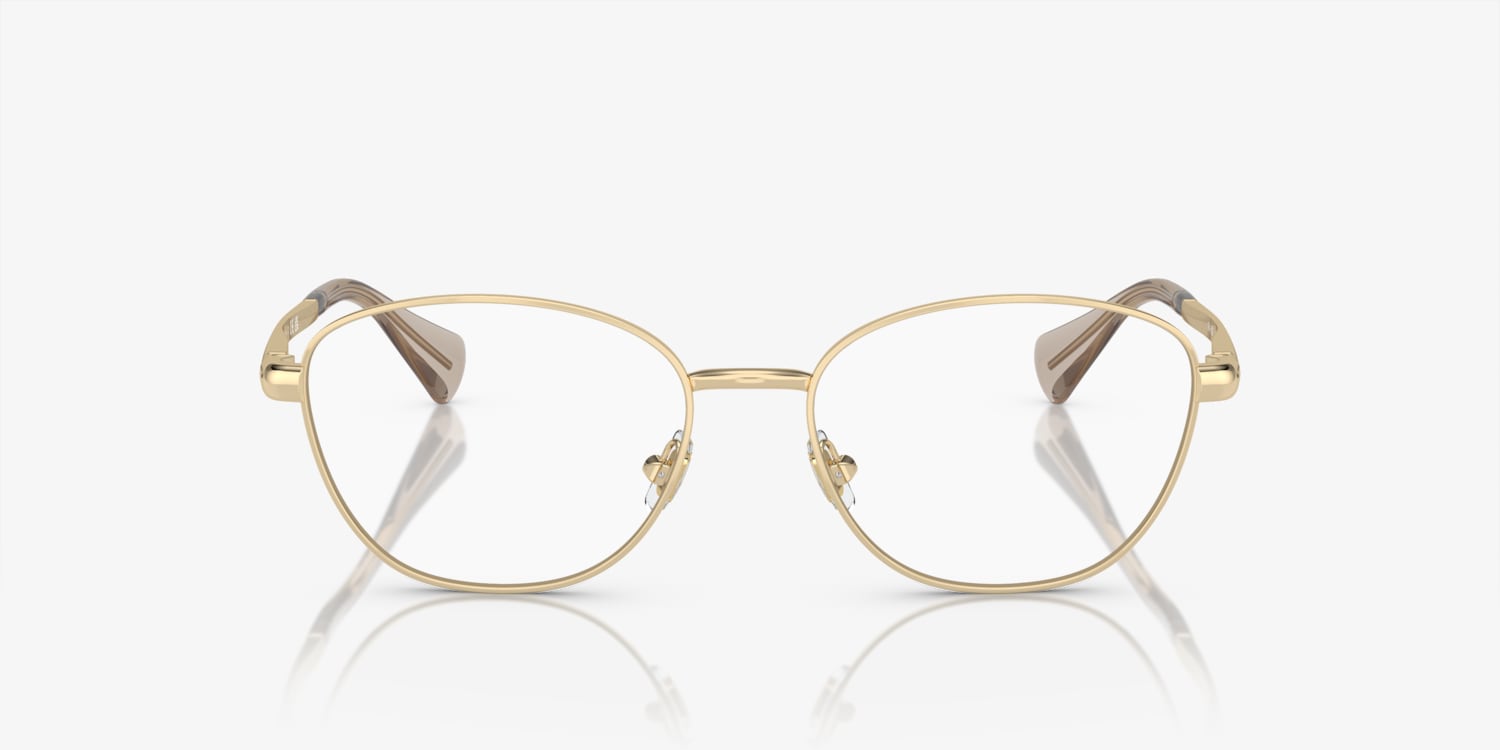 Experience the perfect blend of style and optical efficiency with Ralph RA6057. Crafted from durable metal, these oval-shaped glasses feature a polished finish that adds a touch of sophistication to any look. The shiny pale gold frame color adds a glamorous touch to these frames, making them a must-have accessory for fashion-forward individuals. With their versatile design and high-quality material, these glasses are a great choice for those seeking both style and comfort. Available with prescription lenses.