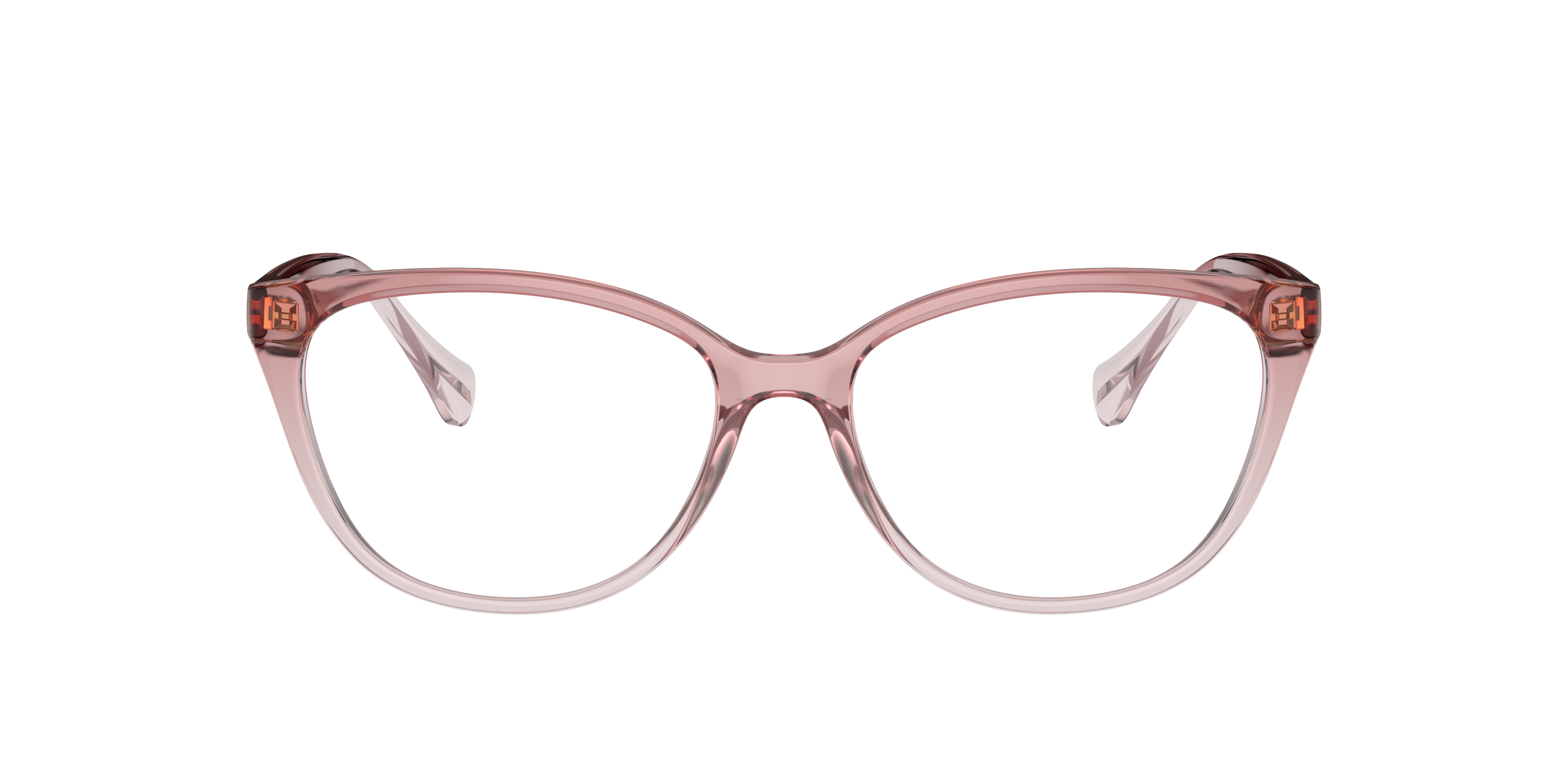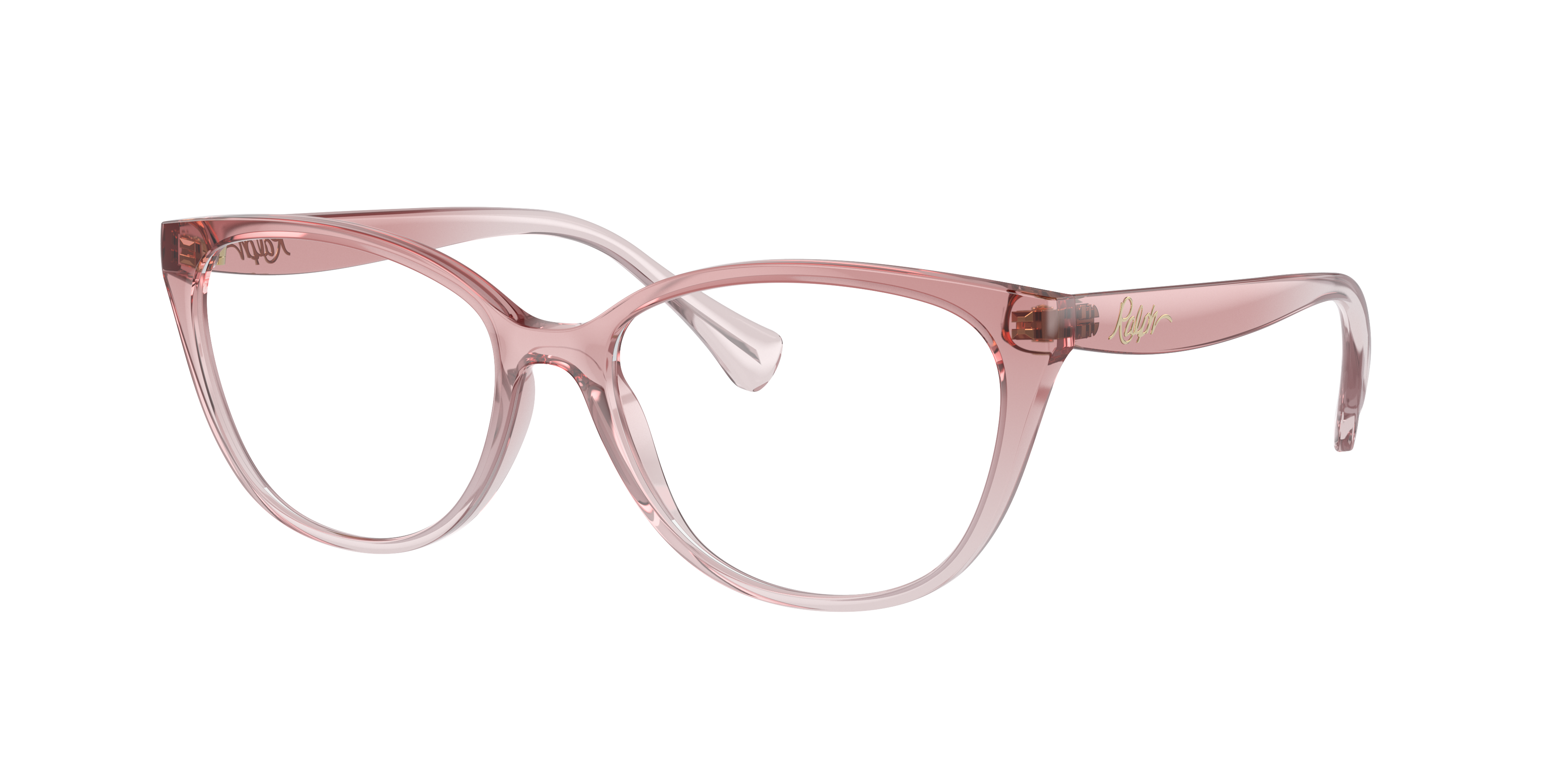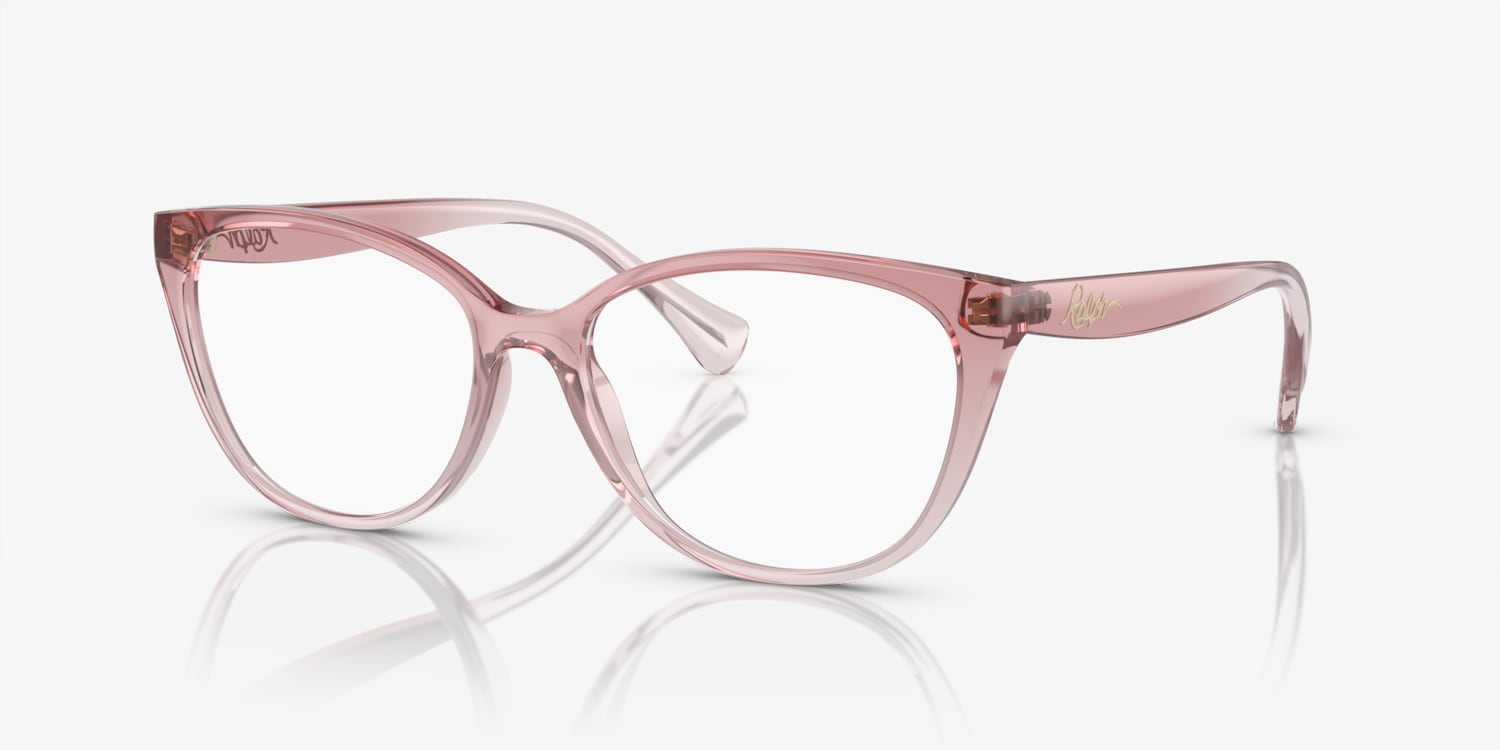 Elevate your style with Ralph RA7135 eyeglasses. The cat eye shape adds a touch of glamour, while the polished finish gives these frames a sleek and sophisticated look. The shiny trasparent pink color adds a pop of personality to any outfit. These glasses are not just stylish, but also practical. Embrace your individuality and choose Ralph RA7135 as your new eyewear accessory.