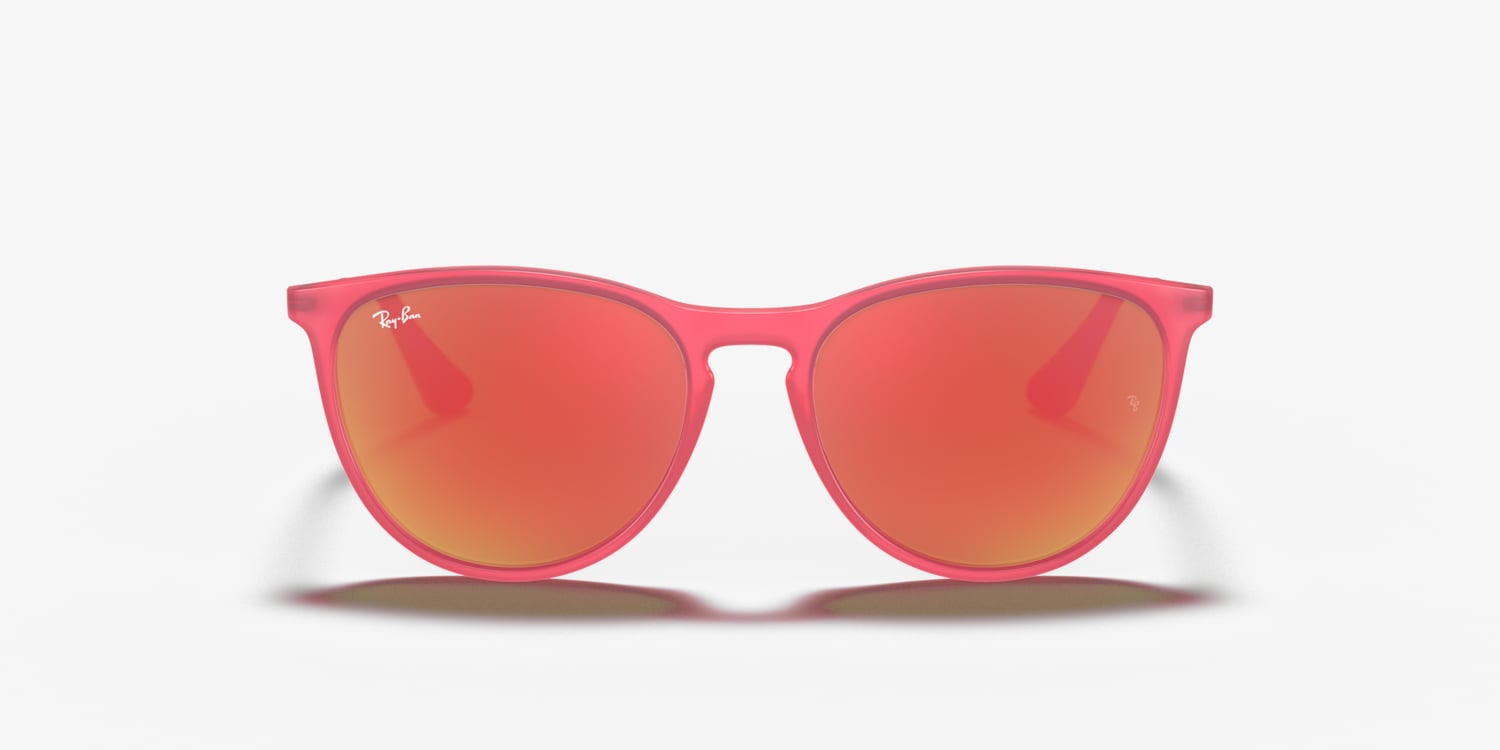 Ray-Ban Erika Kids sunglasses are a perfect blend of style and comfort for children. The phantos shape frame, made from durable acetate, is fitted with a key bridge for added stability. The matte fuchsia fluo frame color adds a pop of color to any outfit, while the brown mirror orange lenses provide excellent protection from the sun's harmful rays. These shades offer both fashion-forward design and practicality for your little ones. Available with prescription lenses.