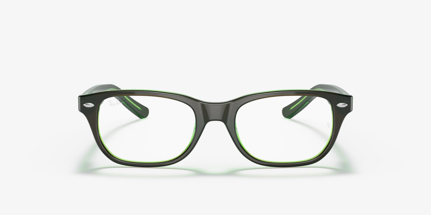 Ray-Ban RB1555 Optics Kids eyeglasses are a stylish and practical choice for your little ones. The square shape and polished finish of the frame, combined with the unique color combination of brown on green fluo, offer a timeless look that is sure to please while also adding a playful touch. Crafted from durable acetate, these glasses are designed to withstand rough handling. Available with prescription lenses.