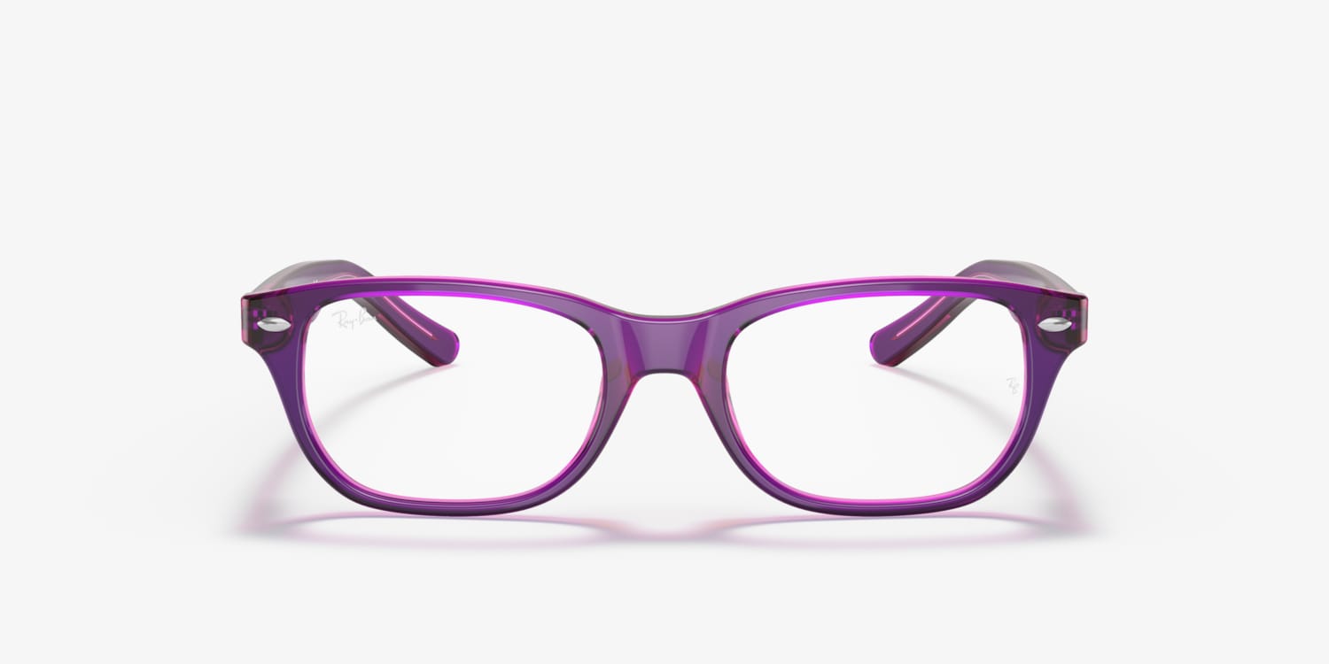 Introducing Ray-Ban RB1555 Optics Kids, a pair of eyeglasses that are designed with children in mind. Crafted from durable acetate, these square-shaped frames feature a polished finish in a vibrant color scheme, offering a fun and playful look for your little ones. The frame color is violet on fuxia fluo, complemented by matching arms for a cohesive design. Available with prescription lenses.