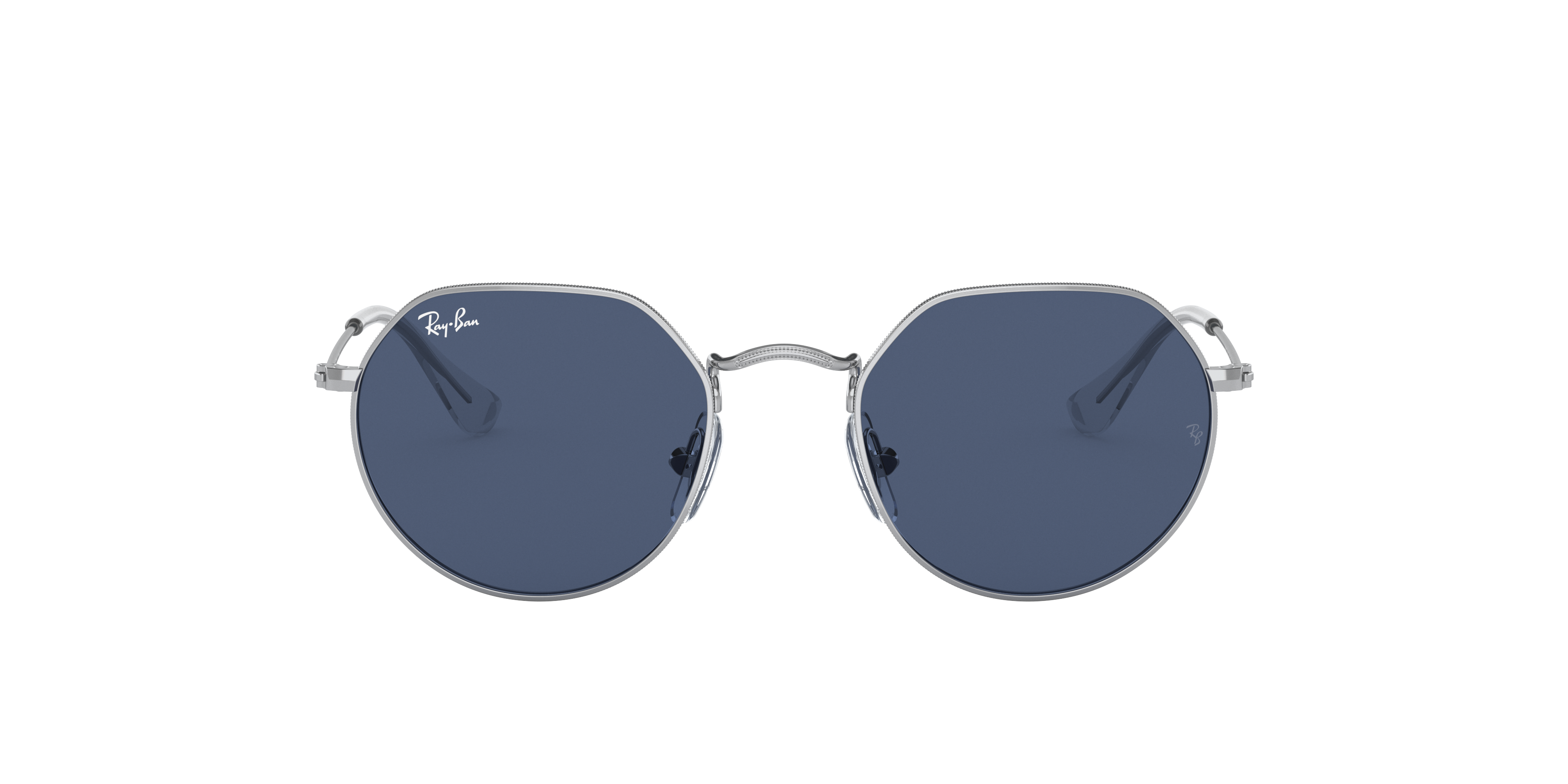 Ray-Ban Jack Kids sunglasses are a playful yet stylish addition to any young adventurer's wardrobe. The irregular shape and polished silver metal frame give these shades a unique, modern look. The dark blue lenses not only add a pop of personality but also provide optimal protection against the sun. With its trendy design and durable construction, this pair is sure to be a hit with kids and parents alike.