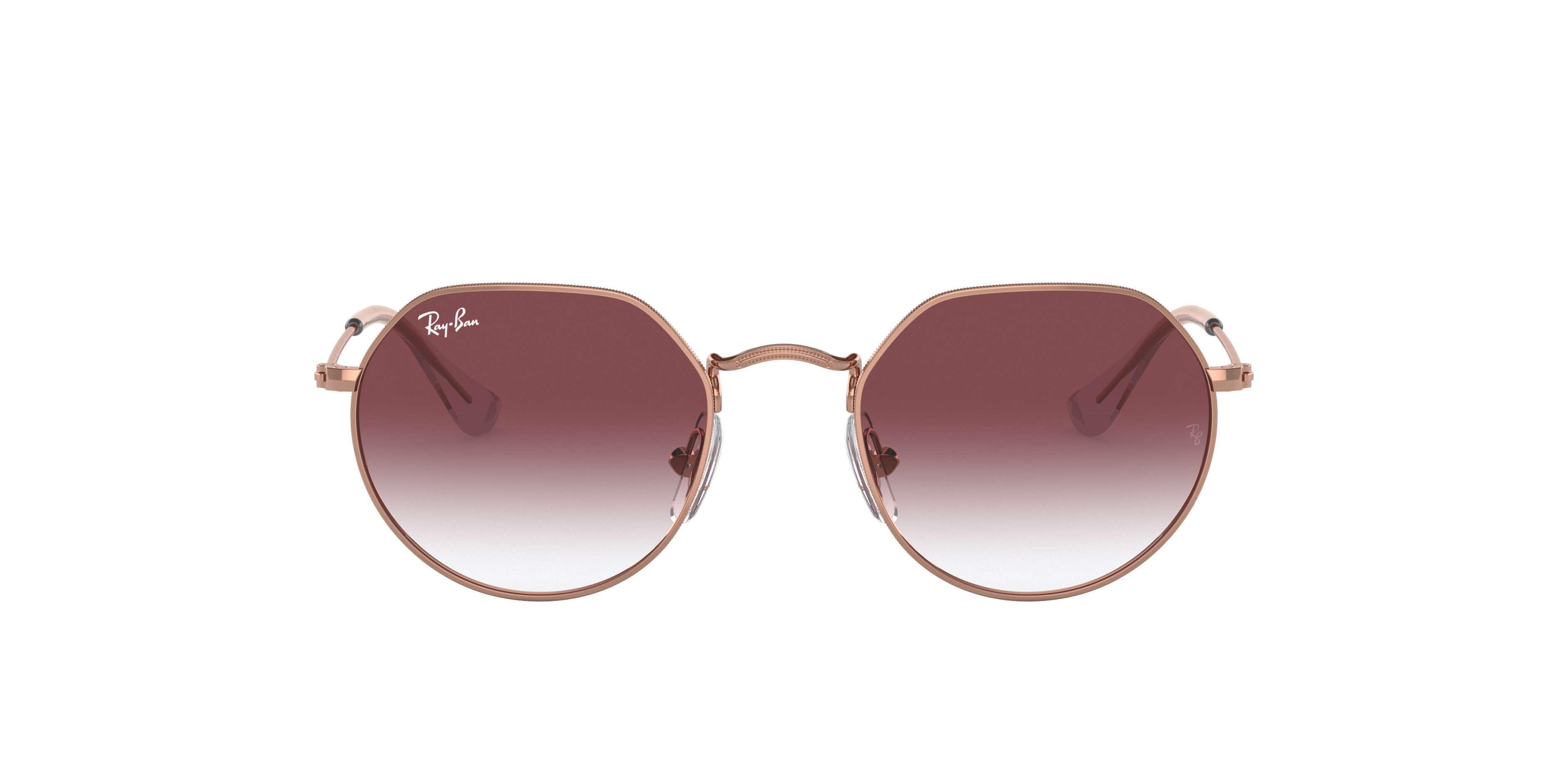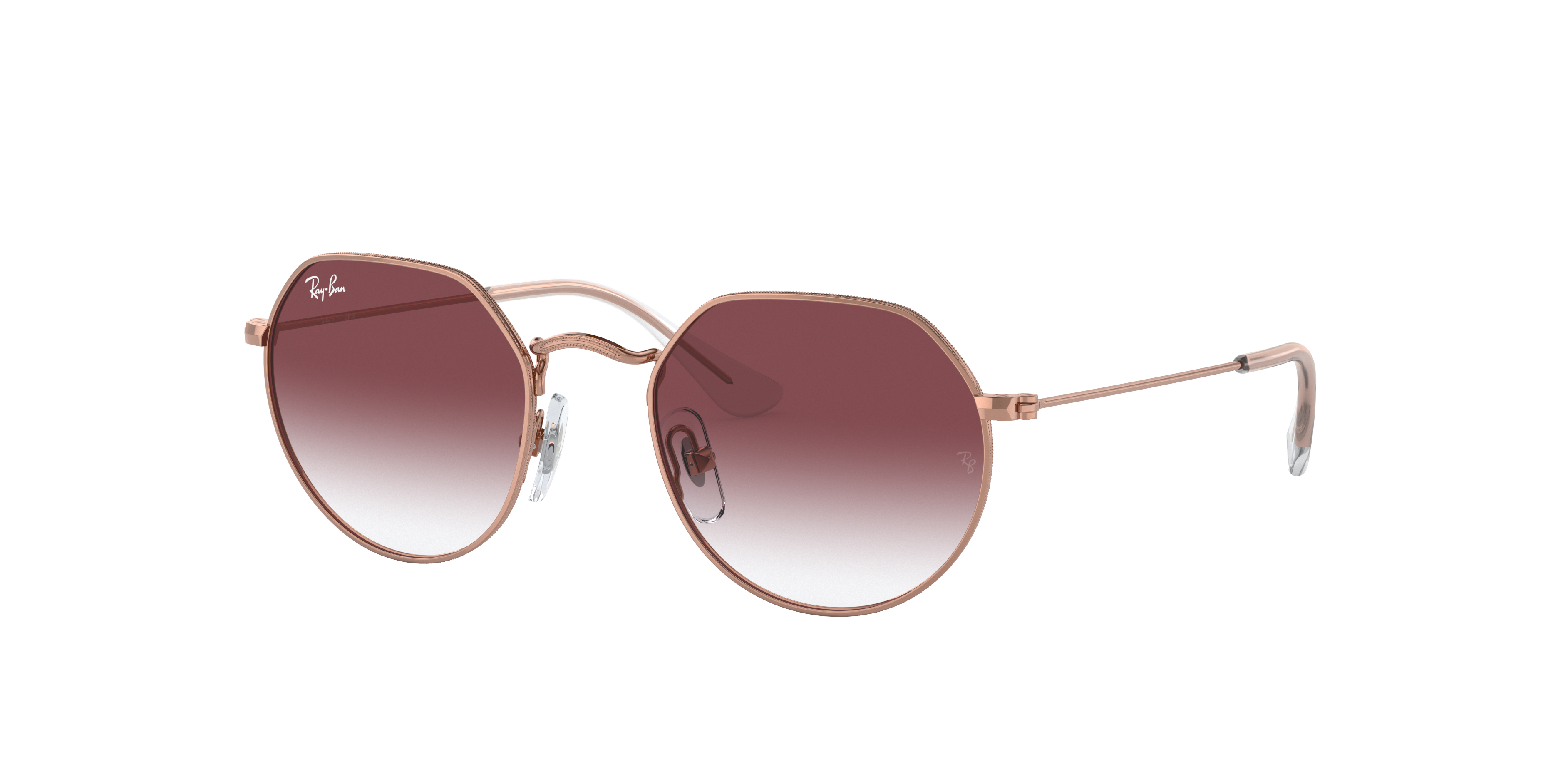 Discover the ideal blend of style and comfort with Ray-Ban Jack Kids sunglasses. These irregular-shaped glasses feature a polished rose gold metal frame, complemented by gradient dark violet lenses that add a touch of fun to any outfit. The frame material is durable yet lightweight, making these shades comfortable for children to wear all day long. Available with prescription lenses.