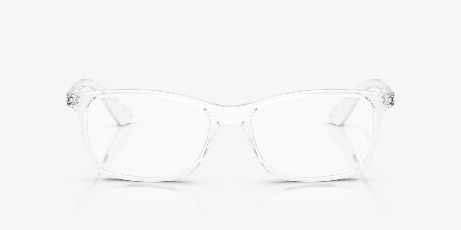 Ray-Ban RB7047 optical frames offer a stylish and functional design. The square shape and polished transparent frame, accented with a black edge, give a contemporary appearance. These glasses are versatile and can easily complement any outfit.