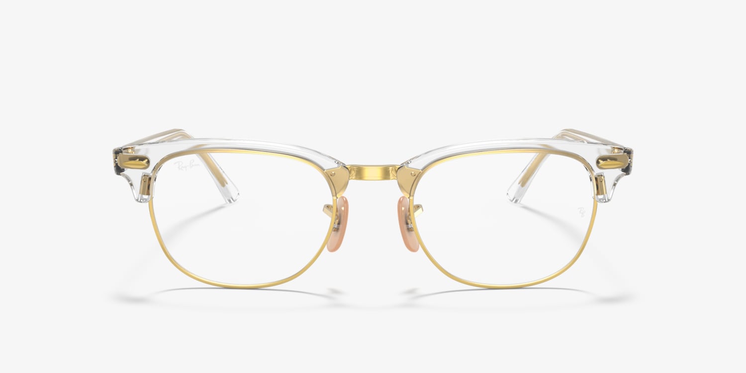Experience the perfect balance between style and functionality with Ray-Ban Clubmaster Optics. These square-shaped frames are crafted from durable acetate, offering a lightweight yet sturdy design. The polished transparent finish gives them a unique look, while the black color adds a touch of sophistication. These eyeglasses are not only a fashion statement but also an ideal choice for everyday wear. Available with prescription lenses.