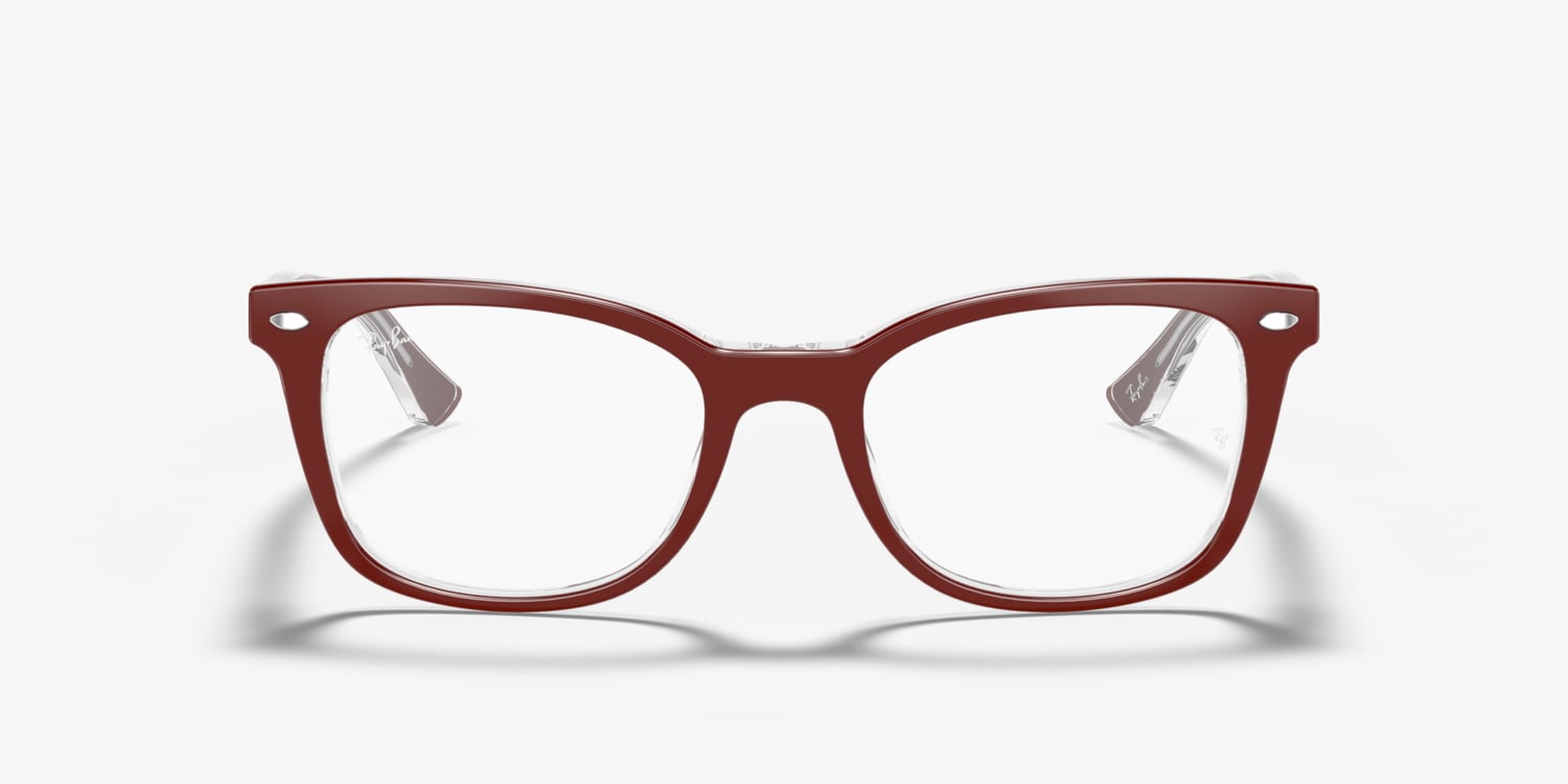 Introducing the Ray-Ban RB5285 Optics, a pair of eyeglasses that redefines the standards of style and comfort. The butterfly shape and polished finish give these frames a unique and sophisticated look. Crafted from durable acetate, the frame comes in a stunning bordeaux on transparent color that will make you stand out from the crowd. These eyeglasses are not just a fashion accessory but also provide superior comfort and an enhanced visual experience.