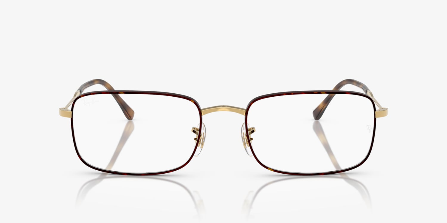 Enhance your style with Ray-Ban RB3746V Optics. The glasses have a unique irregular shape and are made of strong metal for a modern look. The polished havana on gold frame color adds sophistication. These frames are a versatile choice for everyday wear due to their innovative design and superior quality. Available with prescription lenses.