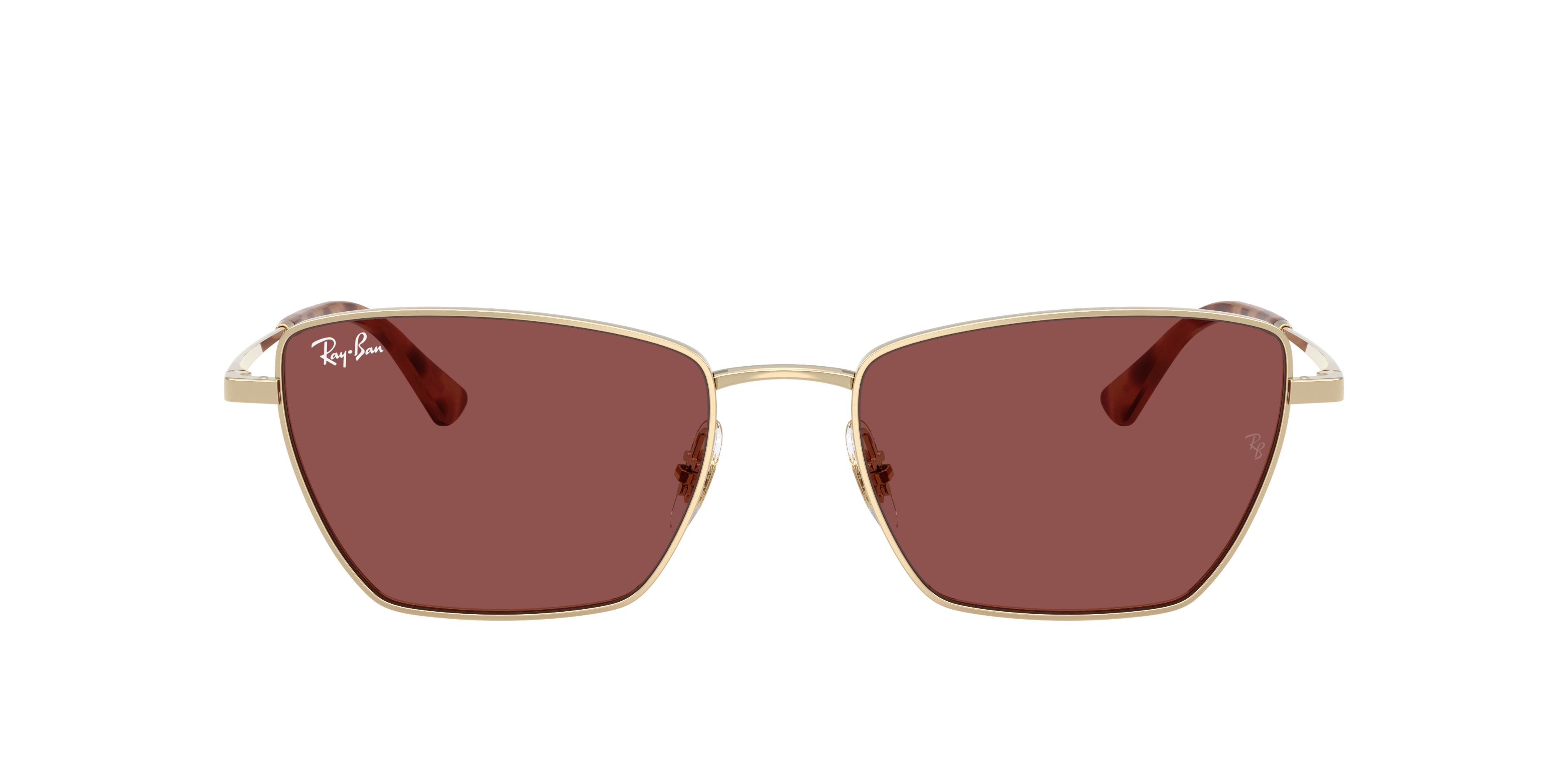 Make a statement in Ray-Ban RB3783 sunglasses, where vintage meets modern design. The irregular sunglasses, crafted from lightweight gold metal, showcase a subtle cat-eye silhouette for a distinctive look. Vivid violet lenses and sprayed havana temple tips add bold energy to the timeless style. These sunglasses with adjustable nosepads ensure effortless comfort and a perfect fit.