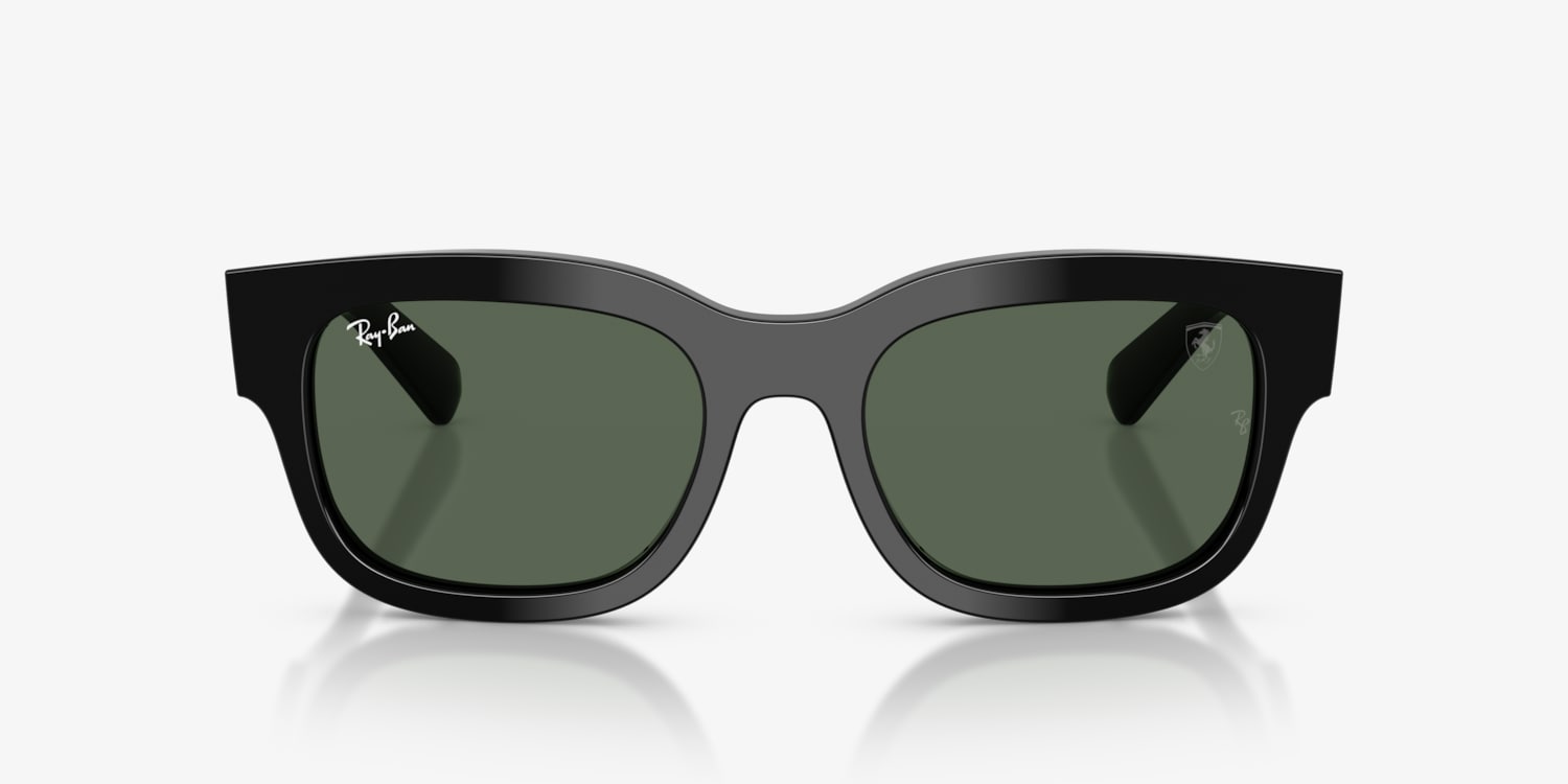 Fuel your style with the RB2228M, a bold statement piece inspired by the high-energy spirit of the Miami Grand Prix. These black square sunglasses, crafted from sleek black plastic, exude modern edge with their sharp lines and defined angles. Green solid-color lenses provide a striking contrast while offering advanced UVA/UVB protection. Complete with durable acetate temples and the iconic Ray-Ban and Scuderia Ferrari logos, these Ray-Ban sunglasses are designed for those who live life in the fast lane.