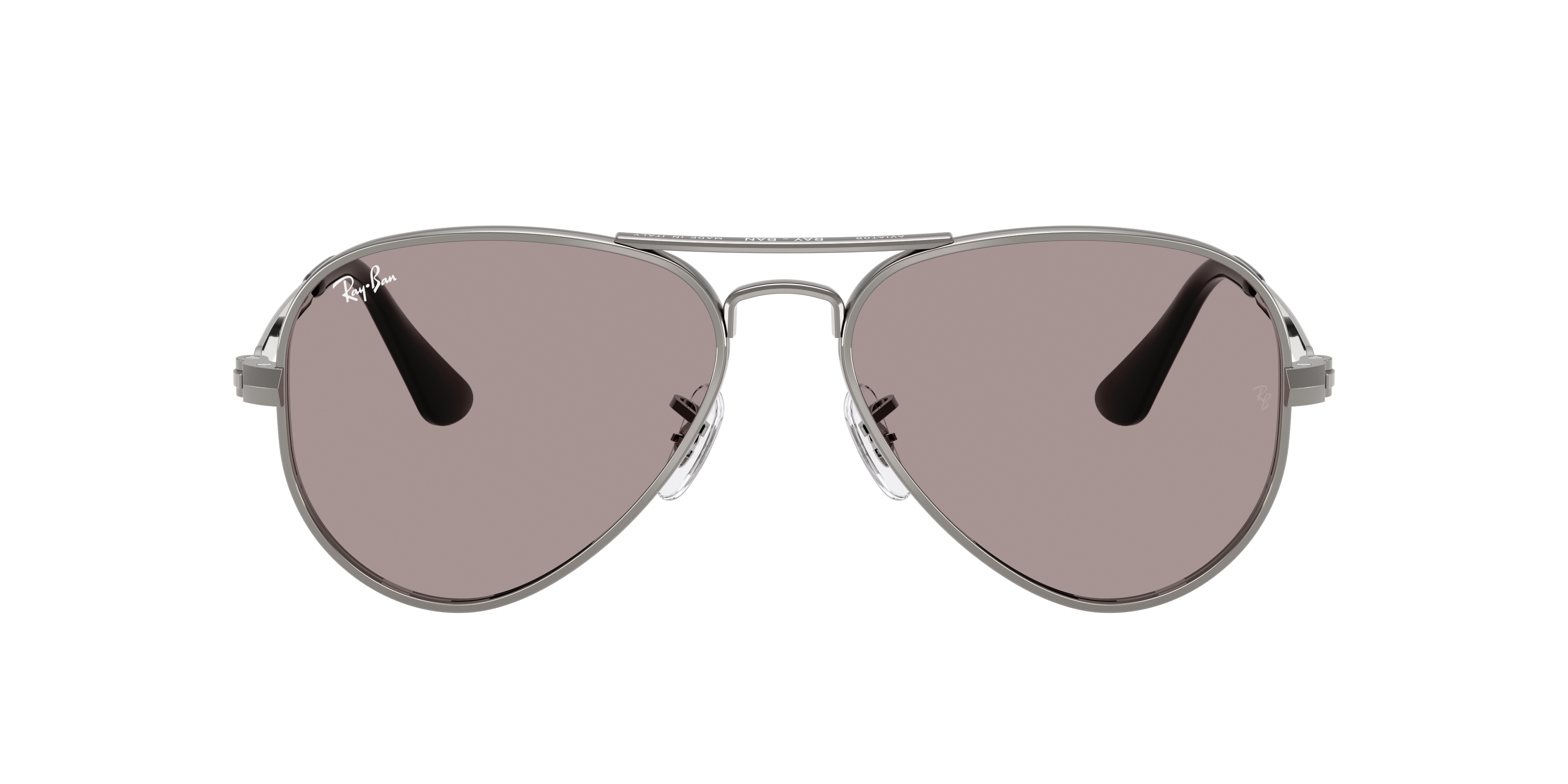 The RB3925 Aviator Max is a bold evolution of a Ray-Ban icon. Featuring a classic pilot shape reimagined with thicker silver and gunmetal frames and temples, these Ray-Ban sunglasses radiate a renewed strength. Violet solid-color lenses add a contemporary edge, while adjustable nosepads sunglasses offer a comfortable, tailored fit. Crafted from lightweight metal, the Aviator Max redefines timeless style with modern attitude.