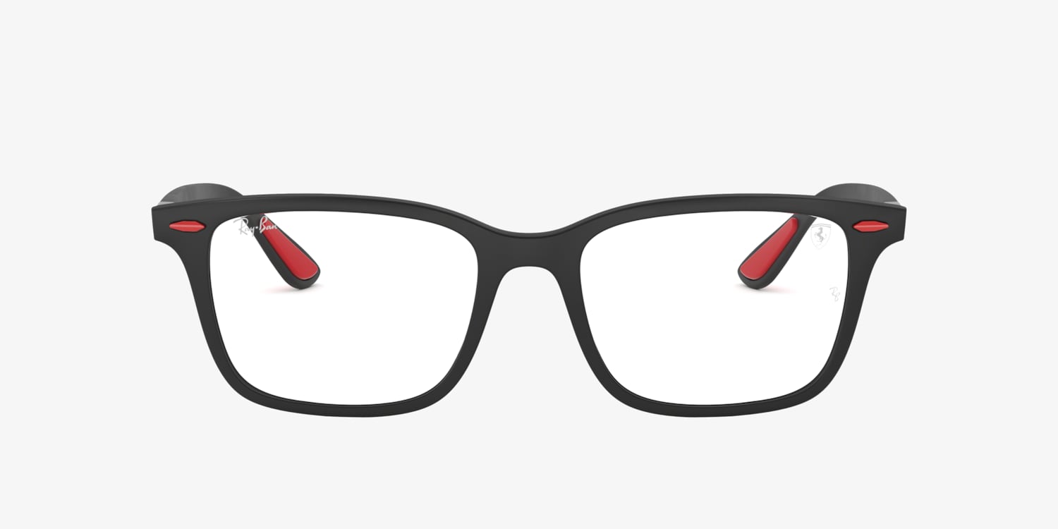 Ray-Ban RB7144M Scuderia Ferrari Collection eyeglasses seamlessly integrate style and performance. The square shape and matte black peek frame offer a sleek, modern look that is also highly durable. These frames are designed to withstand the rigors of everyday wear. The unisex design makes these glasses suitable for every face shape. With shades this versatile, you'll never want to take them off. Available with prescription lenses.