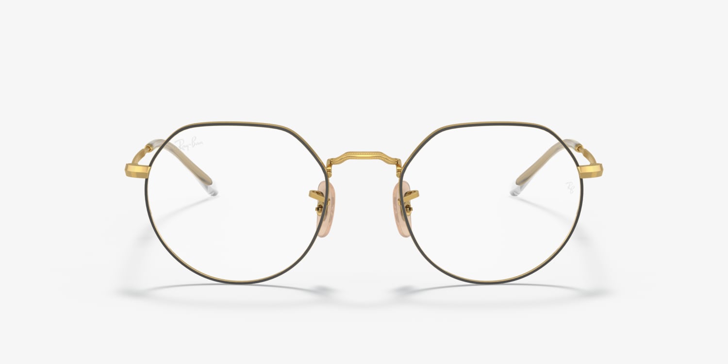 Embrace the unique and unconventional with Ray-Ban Jack Optics. Crafted from durable metal, these irregular-shaped frames feature a matte gold finish that adds a touch of sophistication to any look. The gold color is complemented by black accents on the temples, creating a bold contrast. These eyeglasses are not only stylish but also versatile. Available with prescription lenses.