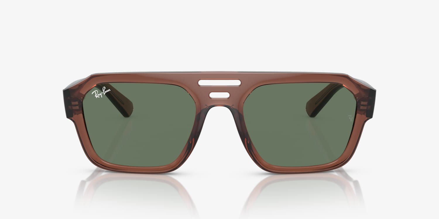 Ray-Ban Corrigan Bio-Based sunglasses redefine the boundaries of style and sustainability. The irregular shape, combined with a polished finish, gives these glasses a unique and modern look. The transparent brown acetate frame is complemented by dark green lenses, adding a touch of color to your look. These shades are not only stylish but also eco-friendly, made from 50% bio-based materials. Embrace the future while being fashion-forward with these one-of-a-kind glasses.