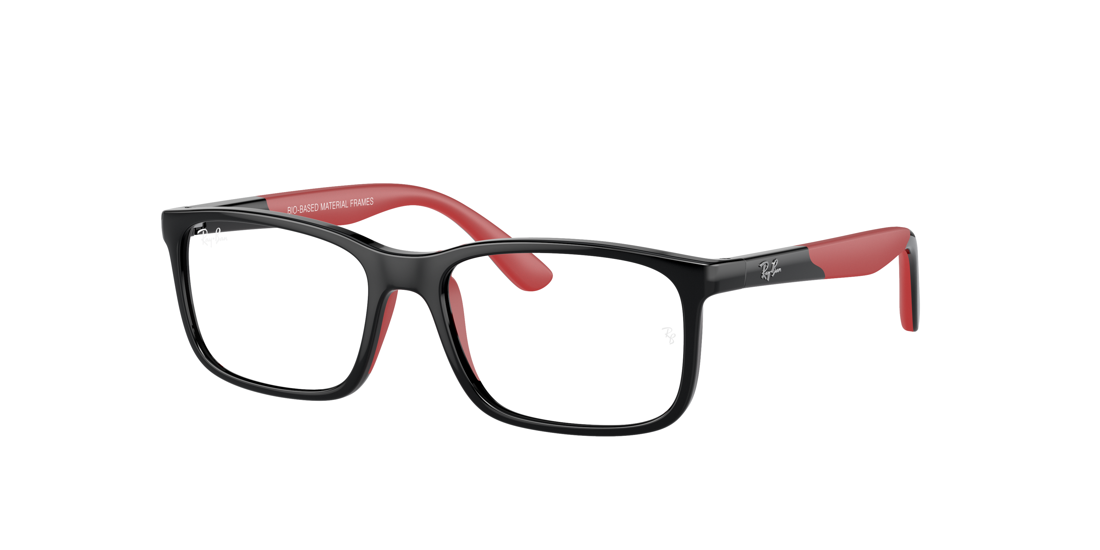 Ray-Ban RB1621 Optics Kids Bio-Based eyeglasses are a perfect blend of style and comfort for your little ones. The polished black on red frame, paired with a rectangle shape, gives these glasses a modern and trendy look. Crafted from bio-based material, these frames are durable and lightweight, ensuring all-day comfort. Available with prescription lenses.