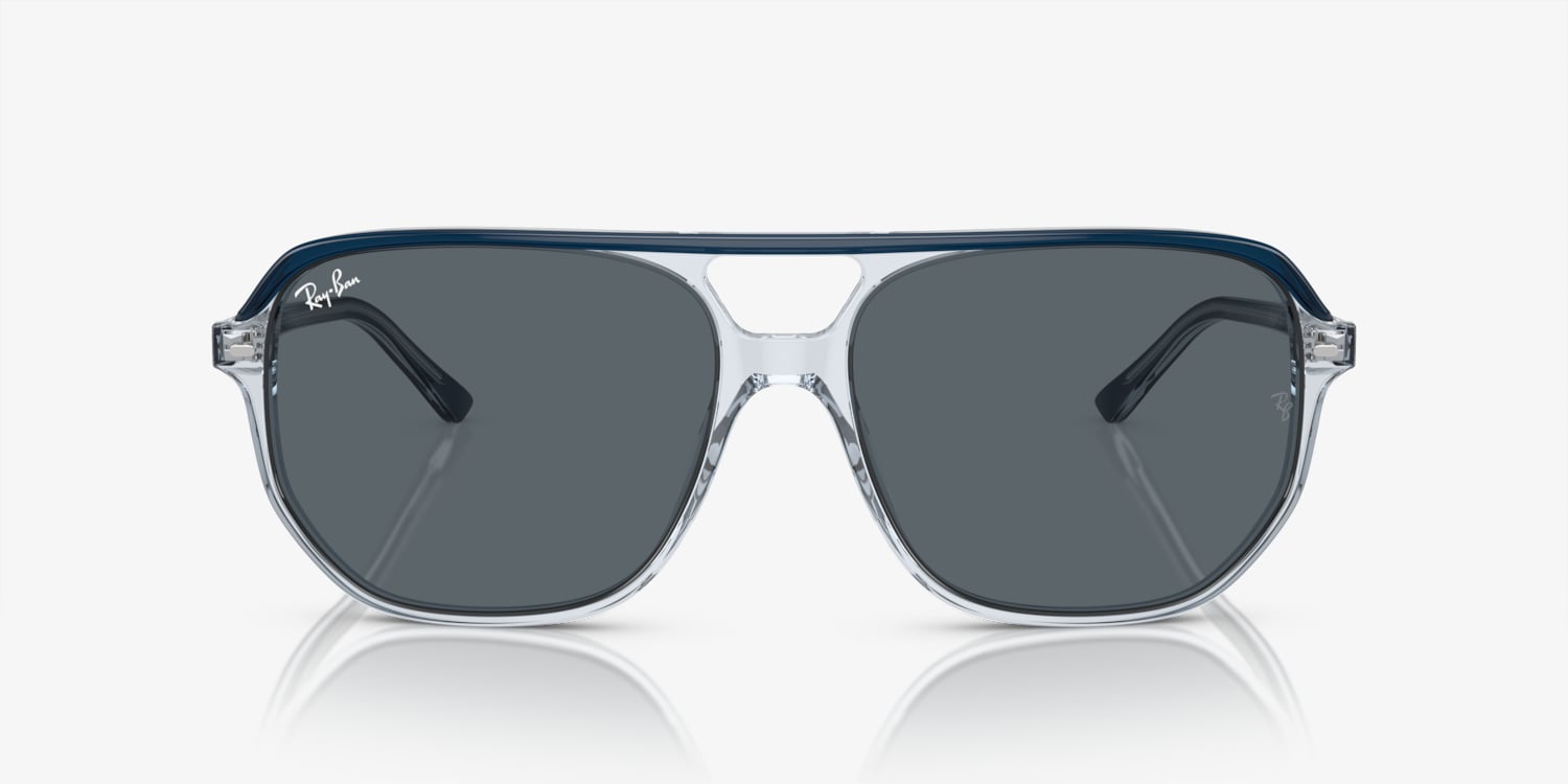 Introducing the Ray-Ban Bill One, a unique take on irregular-shaped frames. Crafted from acetate, these glasses feature a polished finish that adds a touch of sophistication to the irregular design. The frame color is blue on transparent blue, which beautifully complements the lens color in blue. These shades are not only stylish but also versatile and practical for everyday wear. Available with prescription lenses.