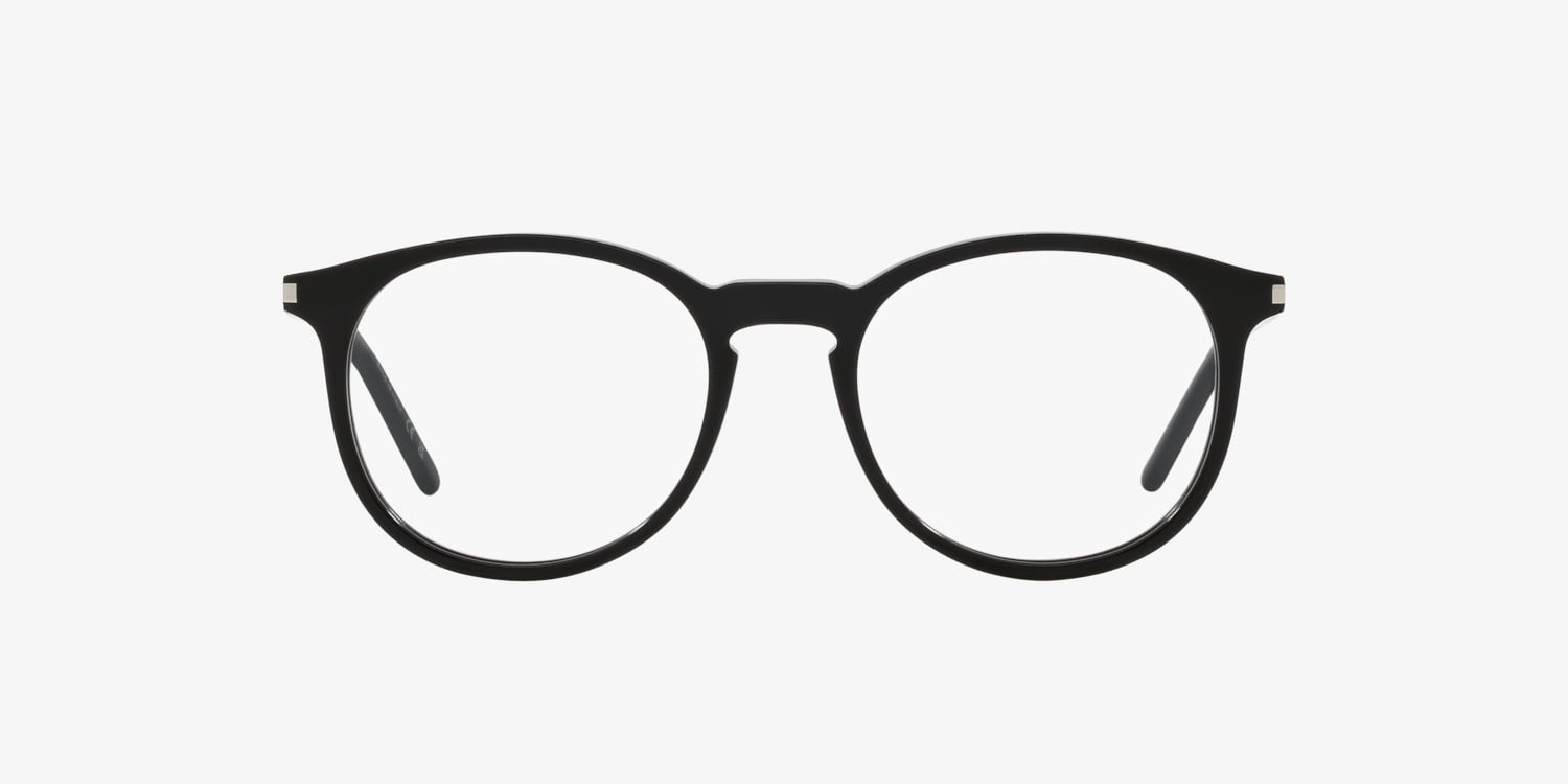 Elevate your style with these Saint Laurent SL 106 Optical glasses. The round shape and polished black acetate frame offer a timeless appeal that is versatile enough to suit any fashion preference. These frames are designed for unisex, making them a great choice for those seeking a stylish yet practical accessory. Embrace the quintessential elegance of Saint Laurent with these chic optical glasses. Available with prescription lenses.