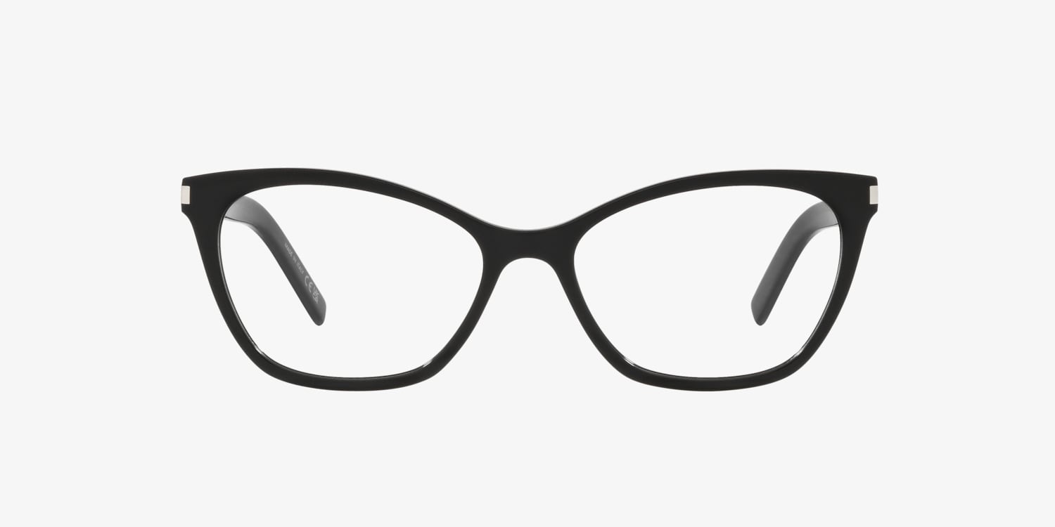 Enhance your style with the Saint Laurent SL 287 Slim optical glasses. The sleek black acetate frame, crafted in a cat eye shape, exudes contemporary elegance. These glasses are not only fashionable but also adaptable, enabling you to customize based on your preferences. Experience the perfect blend of fashion and practicality with the Saint Laurent SL 287 Slim. Available with prescription lenses.