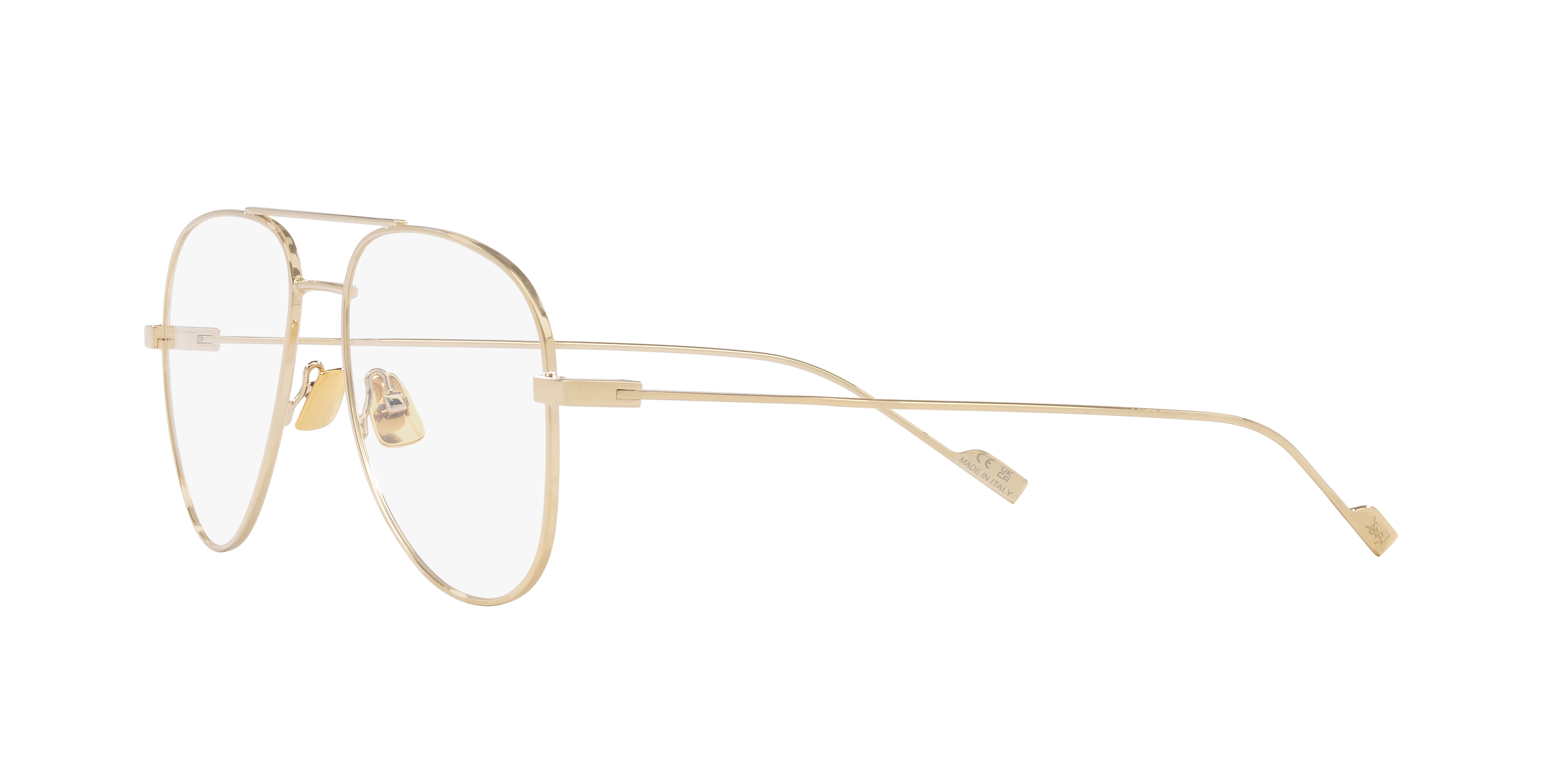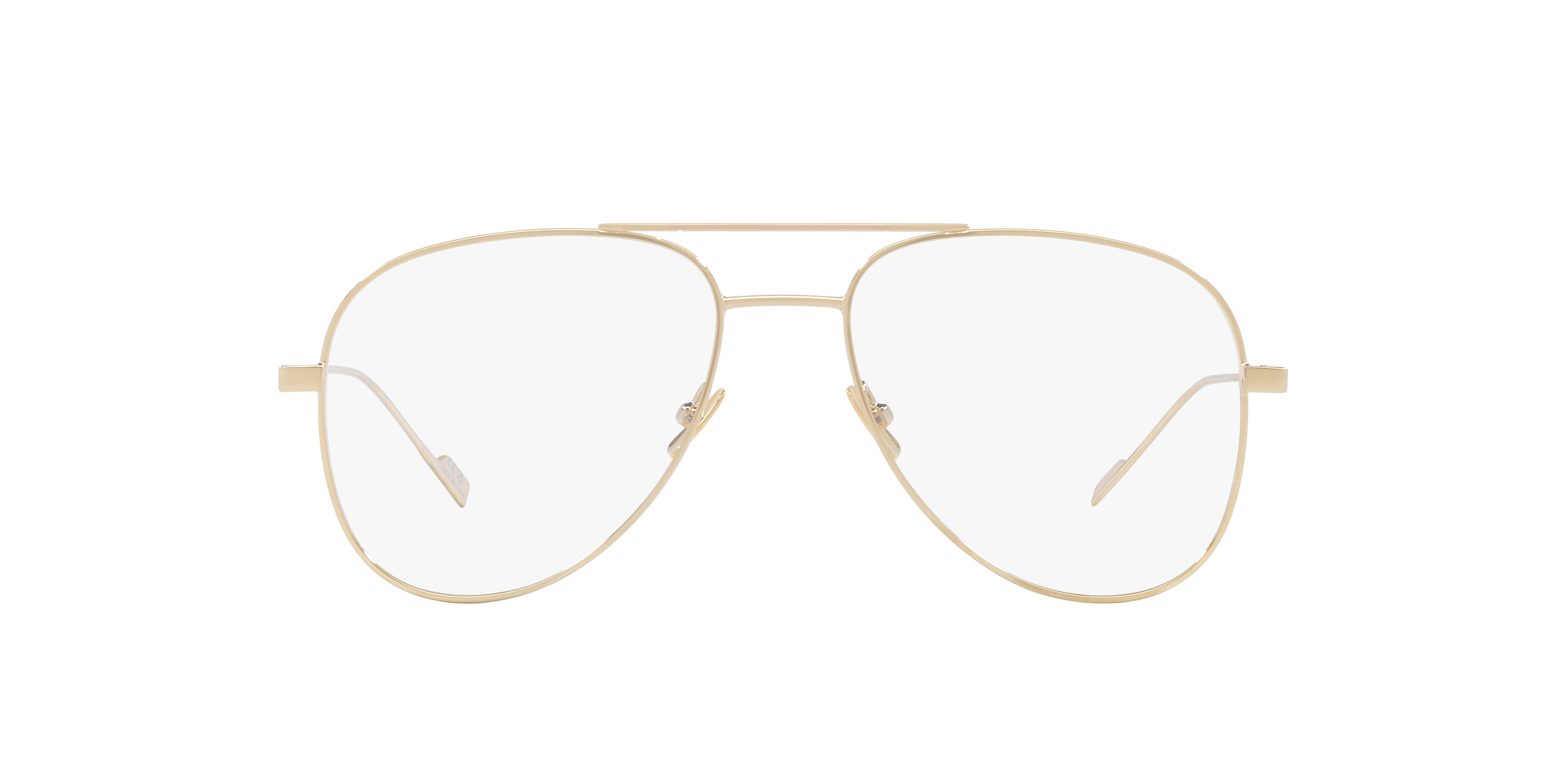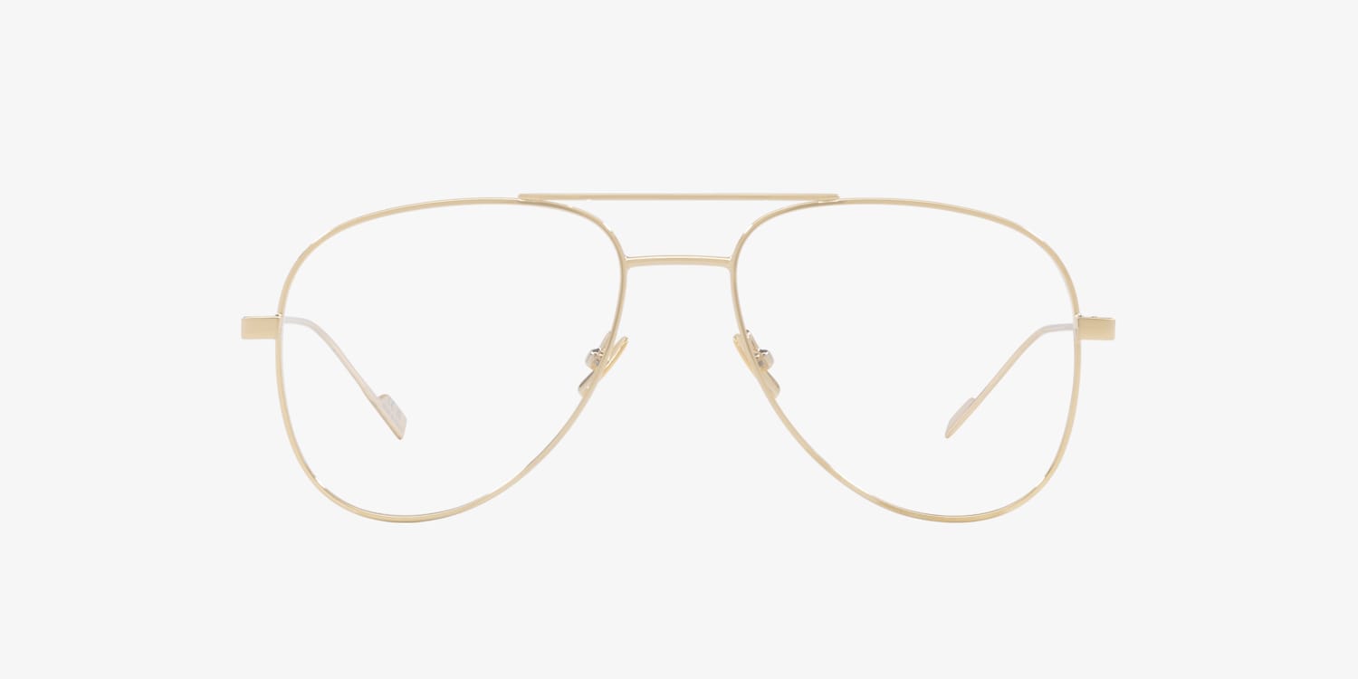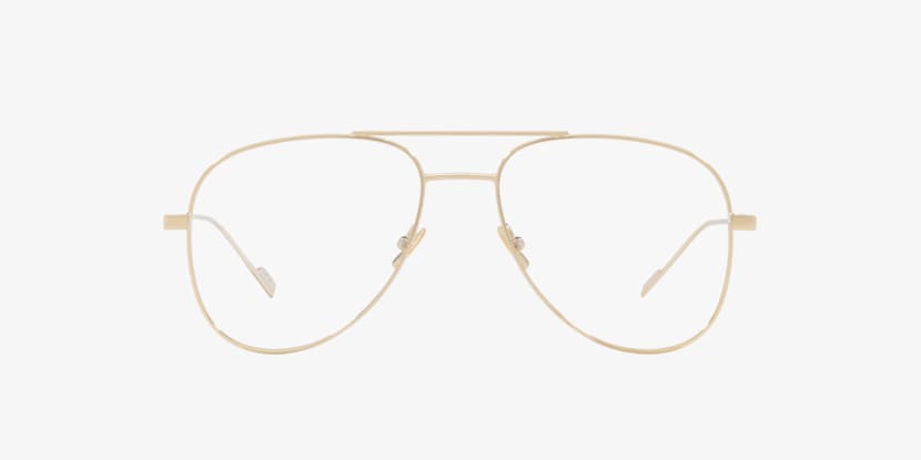 Elevate your style with Saint Laurent CLASSIC11 Optical. These pilot-shaped glasses feature a polished gold metal frame that exudes elegance and sophistication. The gold lens color adds a touch of luxury, making these frames the perfect choice for those seeking timeless fashion. With their versatile design, these shades are a must-have accessory for any fashion-forward individual. Available with prescription lenses.