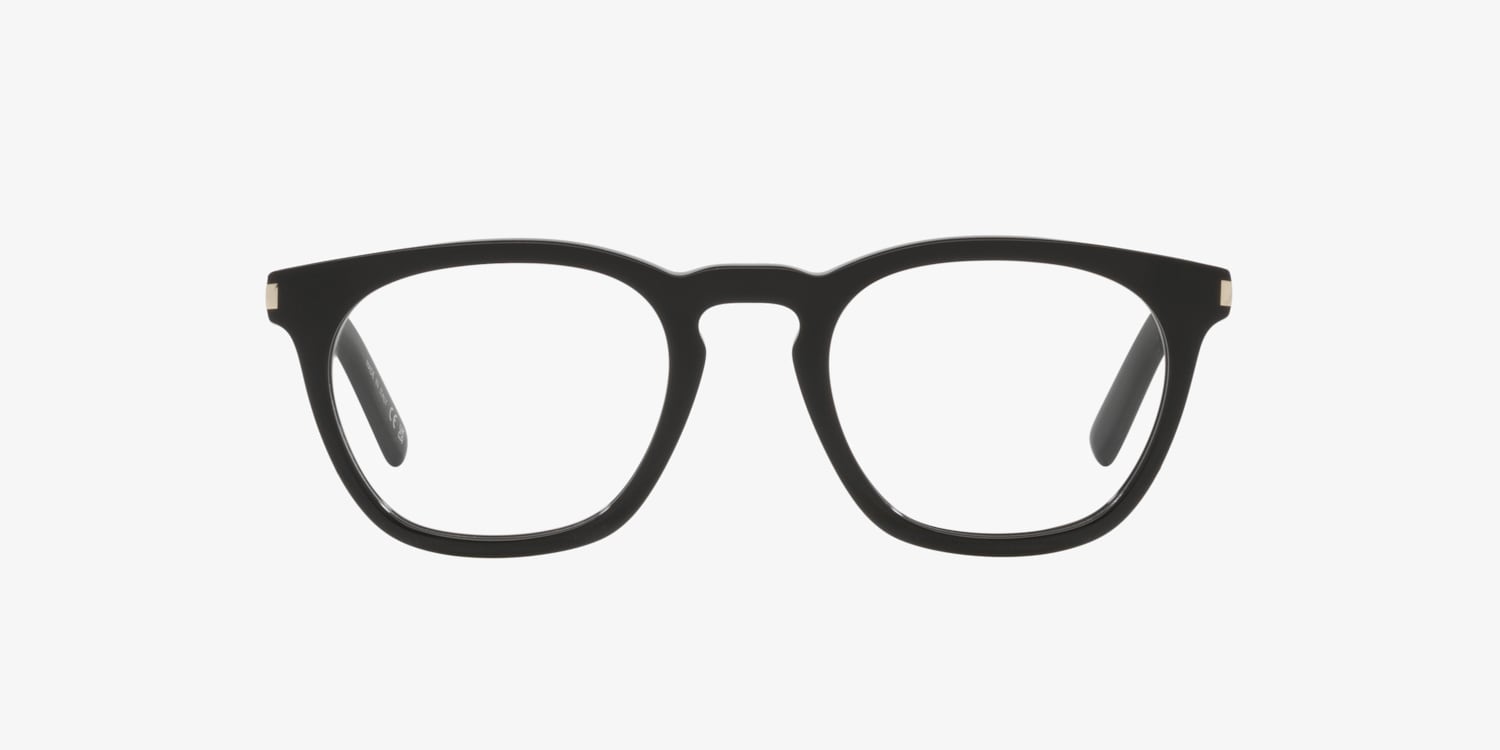 Introducing Saint Laurent SL 28 OPT, a pair of optical glasses that exudes elegance and sophistication. The round shape and polished black acetate frame give these glasses a timeless appeal. The solid black lens color adds to the overall sleek look of these frames. With their striking design, these opticals are not only a practical accessory but also a stylish fashion statement. Available with prescription lenses.