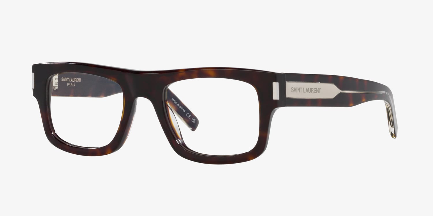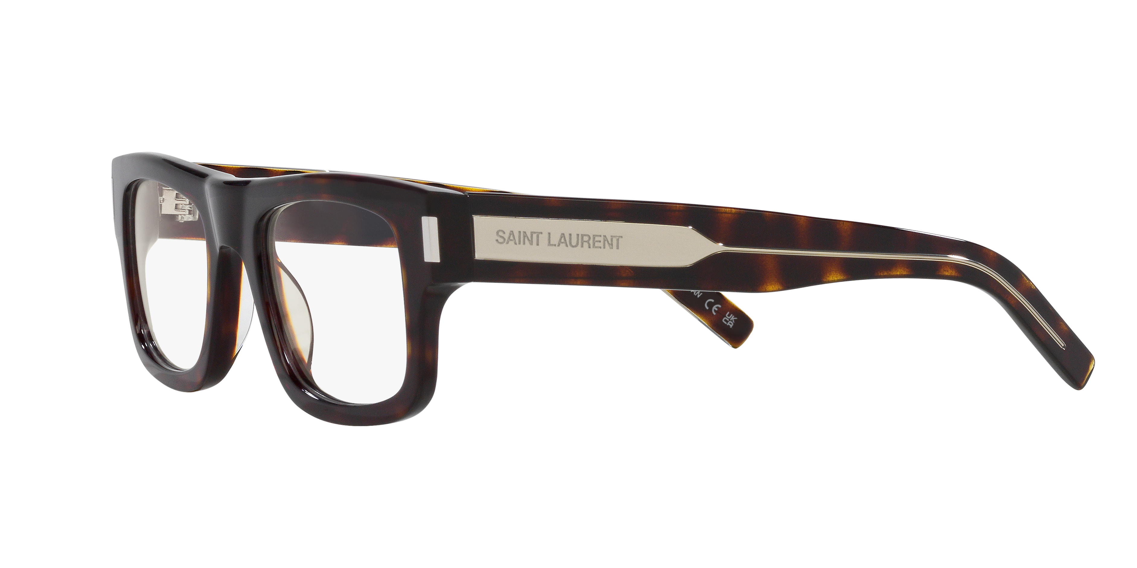 Discover the meticulous craftsmanship that unites style and optical functionality in Saint Laurent SL574 optical glasses. The rectangle shape, crafted from high-quality acetate, offers a modern twist to the iconic tortoise frame. The shiny finish adds a touch of sophistication, making these glasses a versatile accessory for everyday wear. Embrace your individuality with these unique shades from Saint Laurent. Available with prescription lenses.
