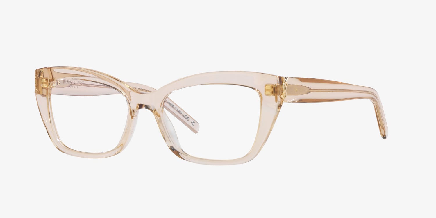 Discover the impeccable balance between style and optical functionality in Saint Laurent SL M117. The polished pink acetate frame, paired with a rectangle shape, adds a touch of sophistication to any outfit. These frames are not just a fashion statement but also ensure that you see clearly. Discover your new favorite pair of glasses with Saint Laurent SL M117. Available with prescription lenses.