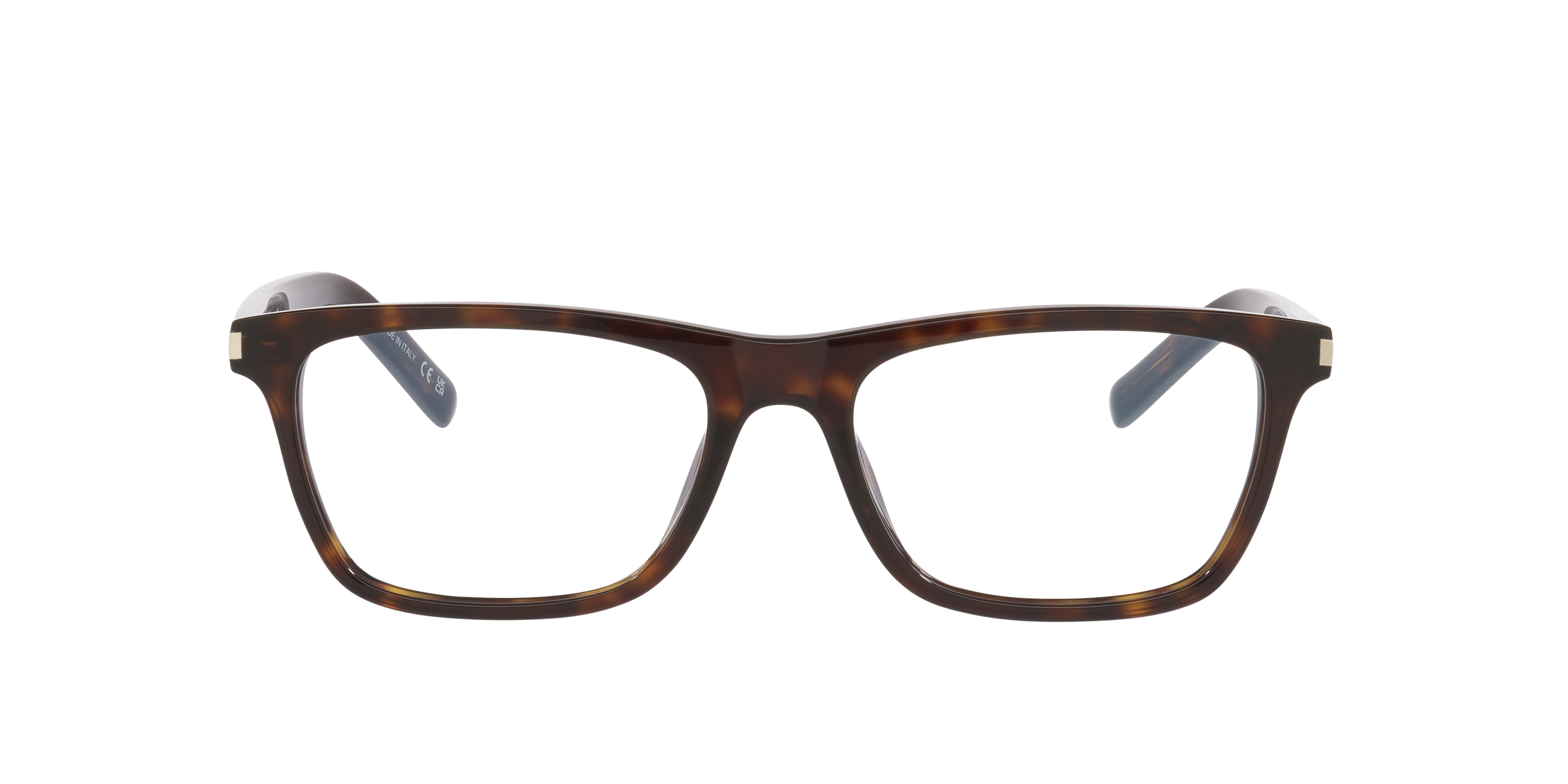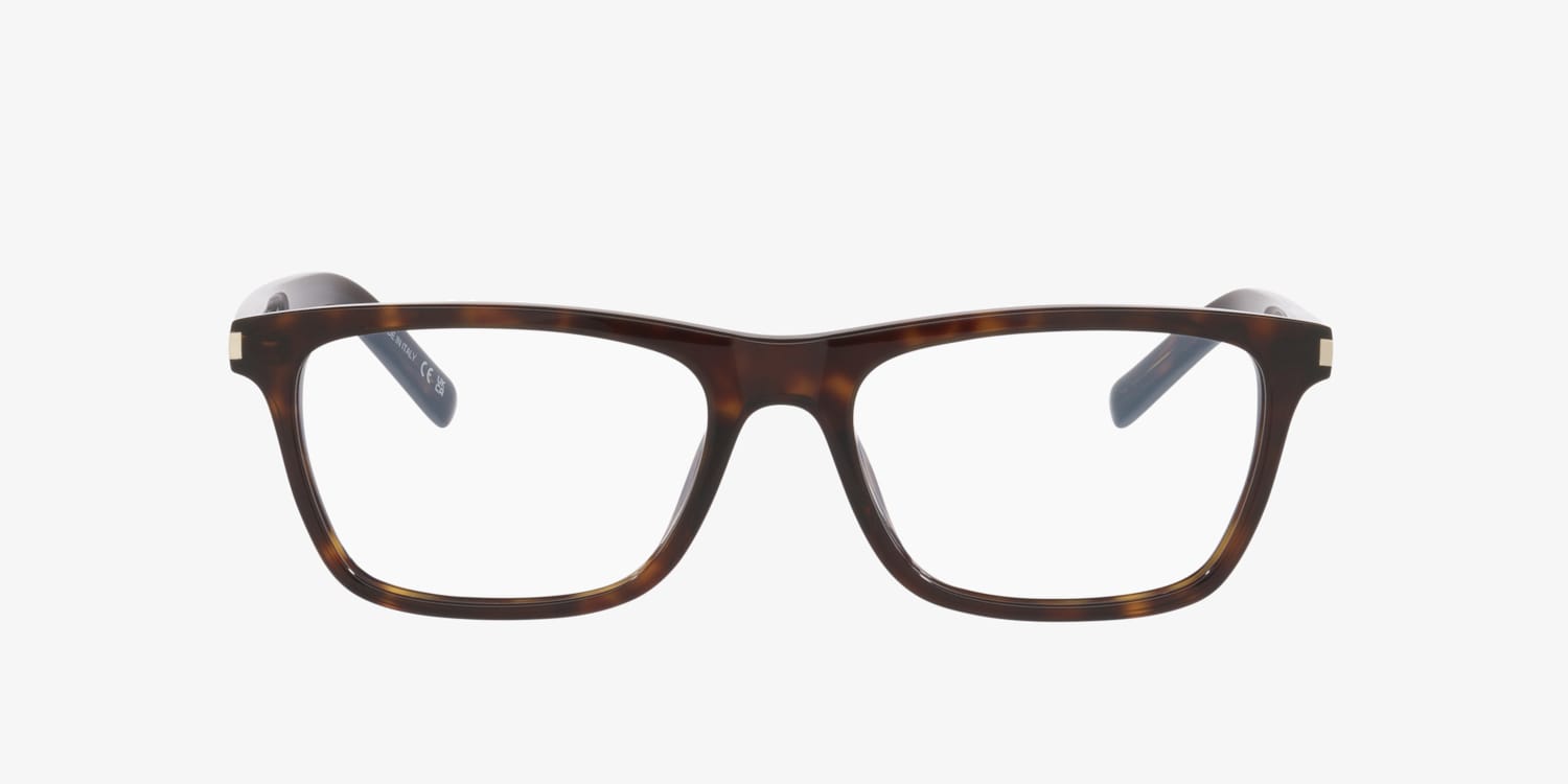 Elevate your look with the Saint Laurent SL841 optical glasses. The rectangular frames have clean, linear lines for a sleek and structured design. Crafted from durable plastic, these Saint Laurent glasses showcase a tortoise front and acetate temples for a polished finish. Clear lenses complete the sophisticated aesthetic.